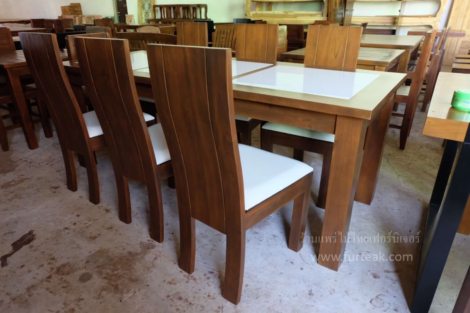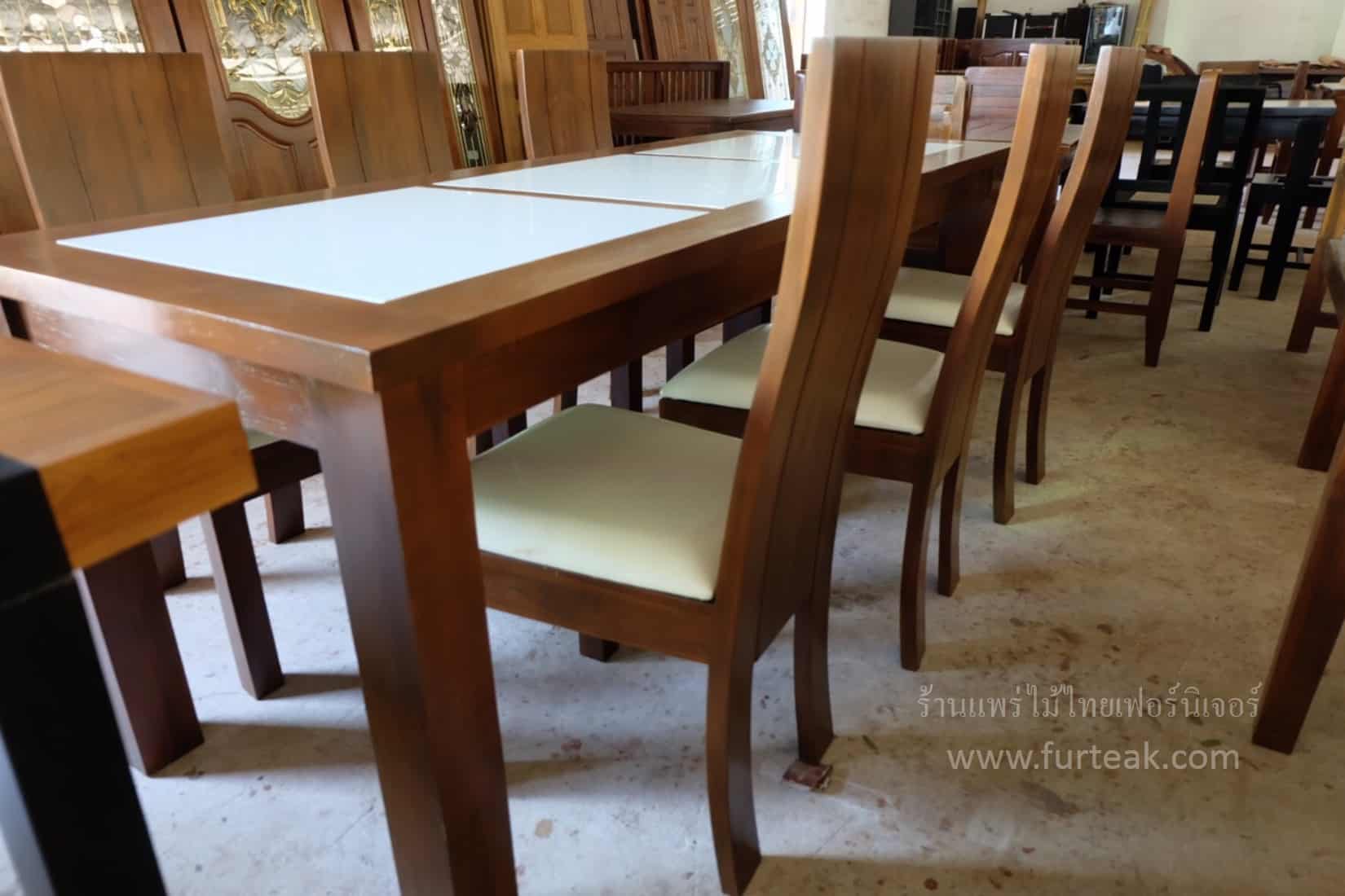 ชุดโต๊ะอาหารกระเบื้อง 6 ที่นั่ง Modern classy style สีสักเข้มเป็นไม้สักทองอบแห้ง ซึ่งคุณสมบัติของไม้เป็นไม้เนื้อแข็งอายุตั้งแต่ 30 ปีขึ้นไป เราเลือกใช้ไม้สักที่มีคุณภาพและใช้กระบวนการอบไม้ จึงทำให้ไม้มีการคงสภาพ ความชื้นน้อย และโอกาสไม้หดตัวน้อยมาก