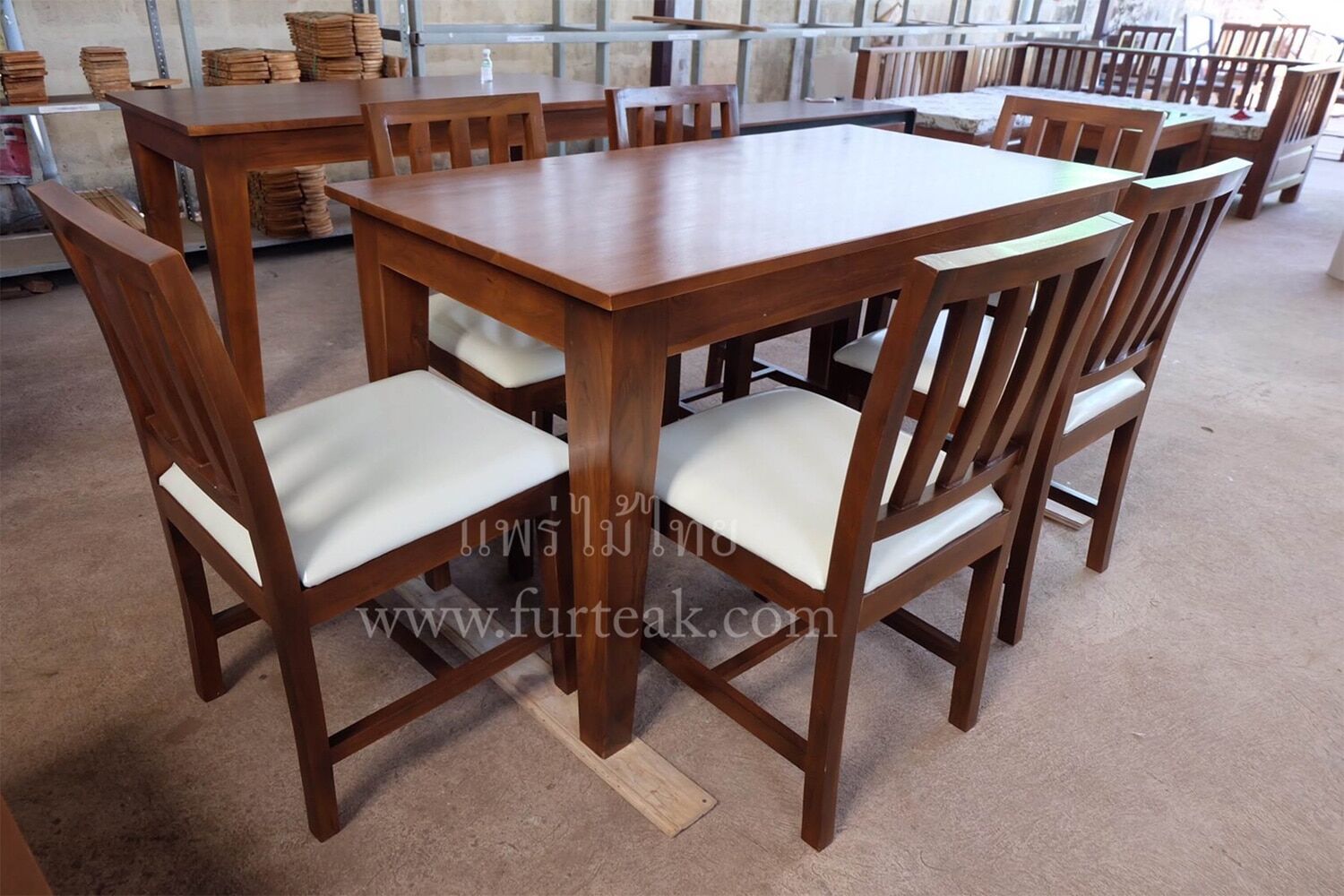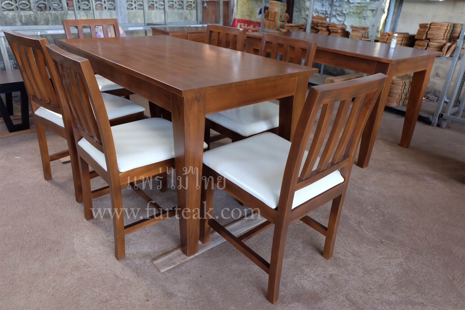 ชุดโต๊ะอาหารโมเดิร์นไม้สัก พร้อมเก้าอี้ 6 ที่นั่ง(รวมเบาะครีม) สีสักเข้มเป็นไม้สักทองอบแห้ง ซึ่งคุณสมบัติของไม้เป็นไม้เนื้อแข็งอายุตั้งแต่ 30 ปีขึ้นไป เราเลือกใช้ไม้สักที่มีคุณภาพและใช้กระบวนการอบไม้ จึงทำให้ไม้มีการคงสภาพ ความชื้นน้อย และโอกาสไม้หดตัวน้อยมาก