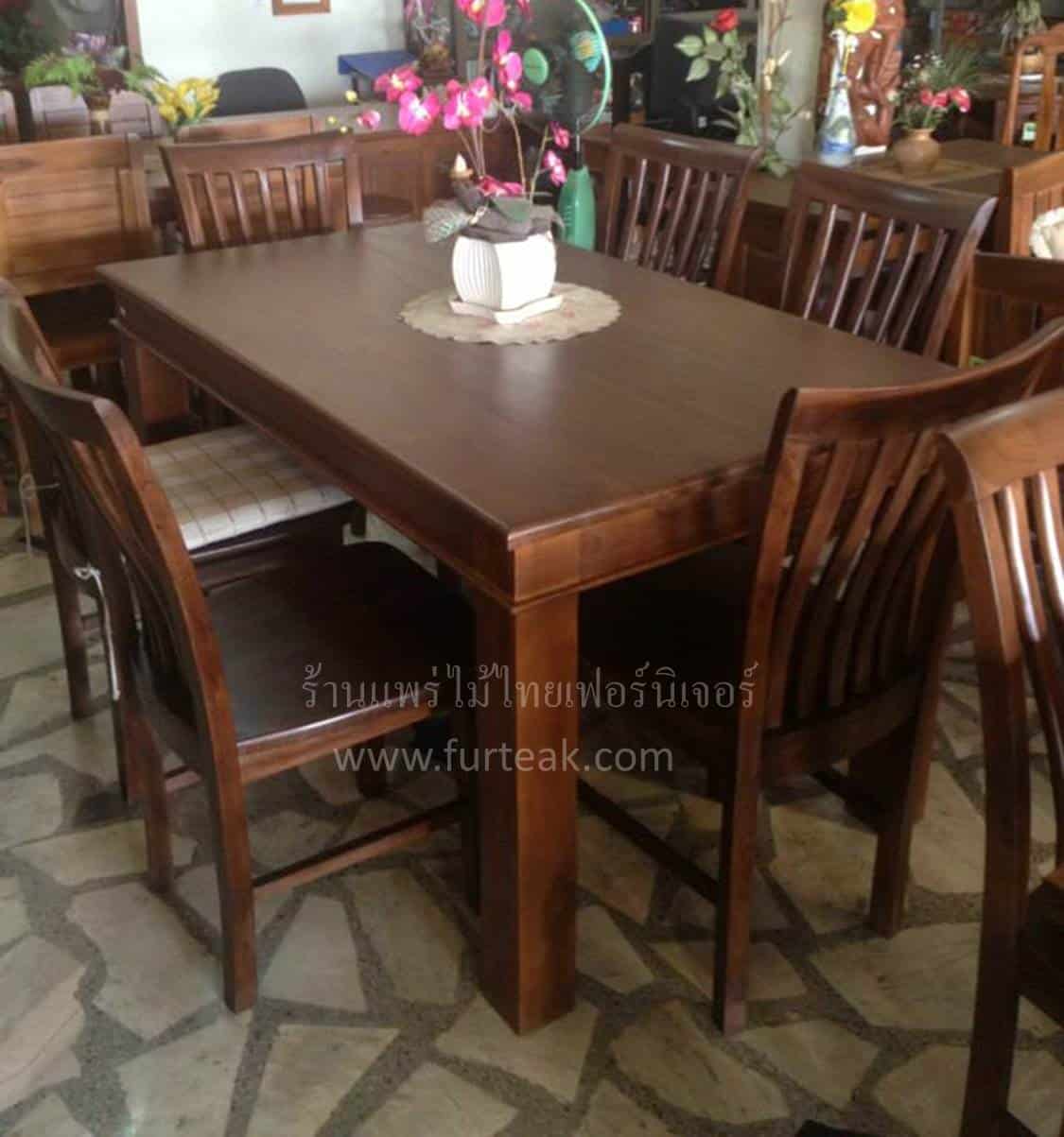 ชุดโต๊ะอาหารไม้เต็ม ทรงสี่เหลี่ยม เก้าอี้ 6 ที่นั่ง สีสักเข้มเป็นไม้สักทองอบแห้ง ซึ่งคุณสมบัติของไม้เป็นไม้เนื้อแข็งอายุตั้งแต่ 30 ปีขึ้นไป เราเลือกใช้ไม้สักที่มีคุณภาพและใช้กระบวนการอบไม้ จึงทำให้ไม้มีการคงสภาพ ความชื้นน้อย และโอกาสไม้หดตัวน้อยมาก