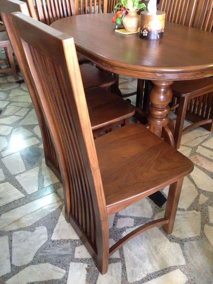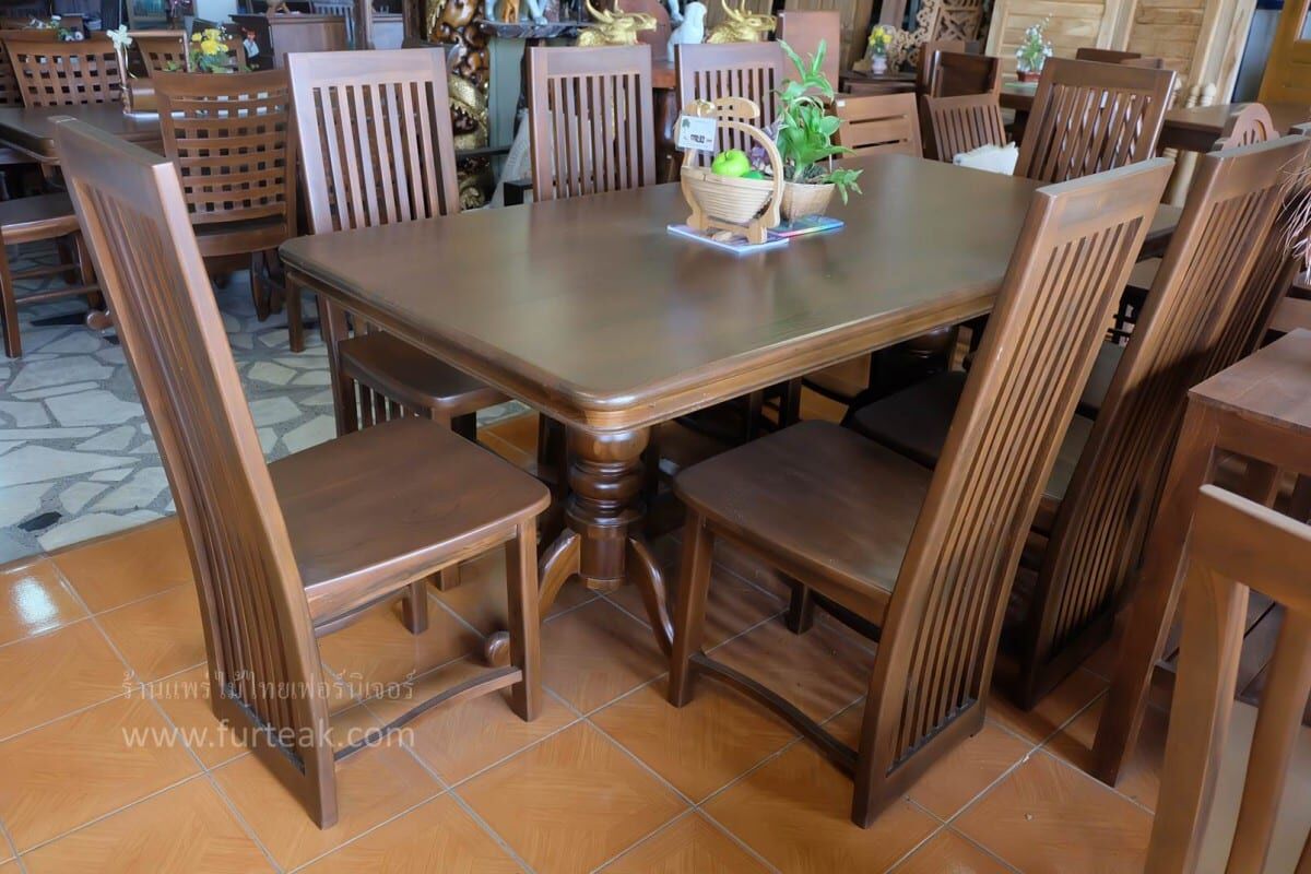 ชุดโต๊ะอาหารไม้สักเก่า พร้อม เก้าอี้ 8 ที่นั่ง สีสักเข้มเป็นไม้สักทองอบแห้ง ซึ่งคุณสมบัติของไม้เป็นไม้เนื้อแข็งอายุตั้งแต่ 30 ปีขึ้นไป เราเลือกใช้ไม้สักที่มีคุณภาพและใช้กระบวนการอบไม้ จึงทำให้ไม้มีการคงสภาพ ความชื้นน้อย และโอกาสไม้หดตัวน้อยมาก