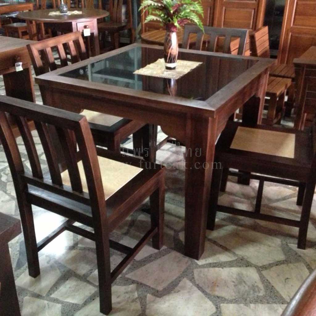 ชุดโต๊ะอาหารกระเบื้อง ทรงสี่เหลี่ยม เก้าอี้ 4 ที่นั่ง สีสักเข้ม