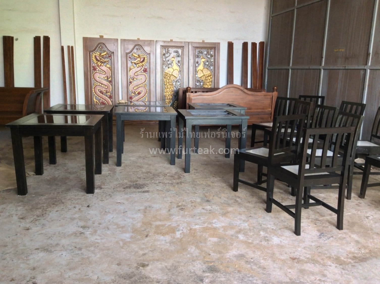 ชุดโต๊ะอาหารกระเบื้อง ทรงสี่เหลี่ยม เก้าอี้ 4 ที่นั่ง สีโอ้คดำเป็นไม้สักทองอบแห้ง ซึ่งคุณสมบัติของไม้เป็นไม้เนื้อแข็งอายุตั้งแต่ 30 ปีขึ้นไป เราเลือกใช้ไม้สักที่มีคุณภาพและใช้กระบวนการอบไม้ จึงทำให้ไม้มีการคงสภาพ ความชื้นน้อย และโอกาสไม้หดตัวน้อยมาก