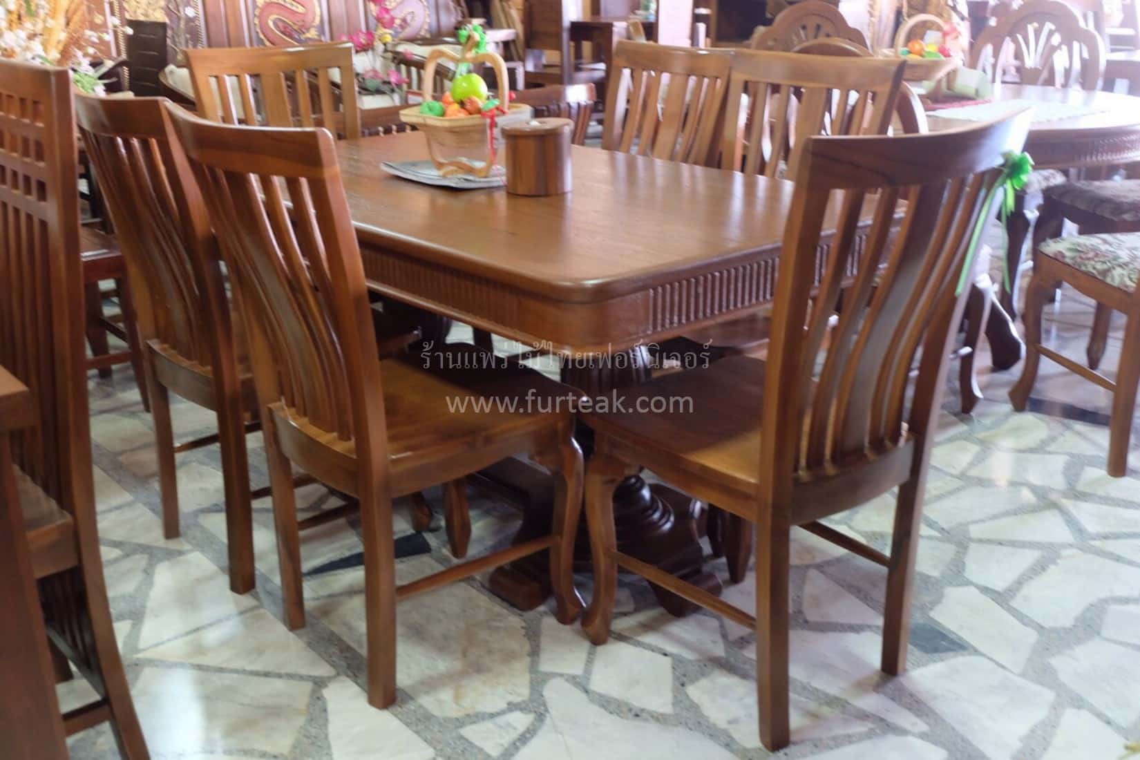 ชุดโต๊ะอาหารไม้สักเก่า พร้อม เก้าอี้ซี่ 6 ที่นั่ง สีสักเข้มเป็นไม้สักทองอบแห้ง ซึ่งคุณสมบัติของไม้เป็นไม้เนื้อแข็งอายุตั้งแต่ 30 ปีขึ้นไป เราเลือกใช้ไม้สักที่มีคุณภาพและใช้กระบวนการอบไม้ จึงทำให้ไม้มีการคงสภาพ ความชื้นน้อย และโอกาสไม้หดตัวน้อยมาก