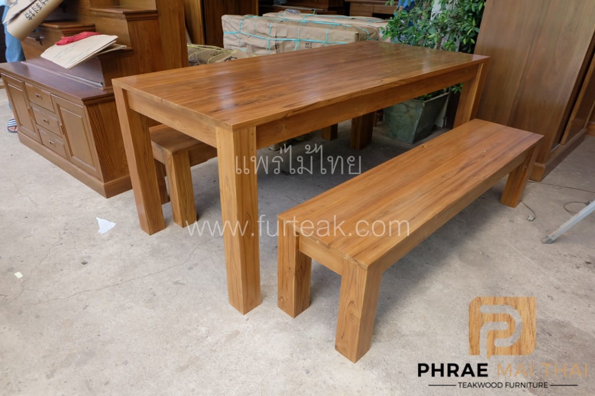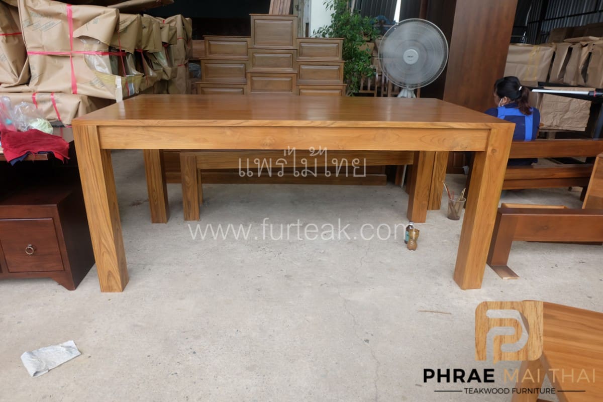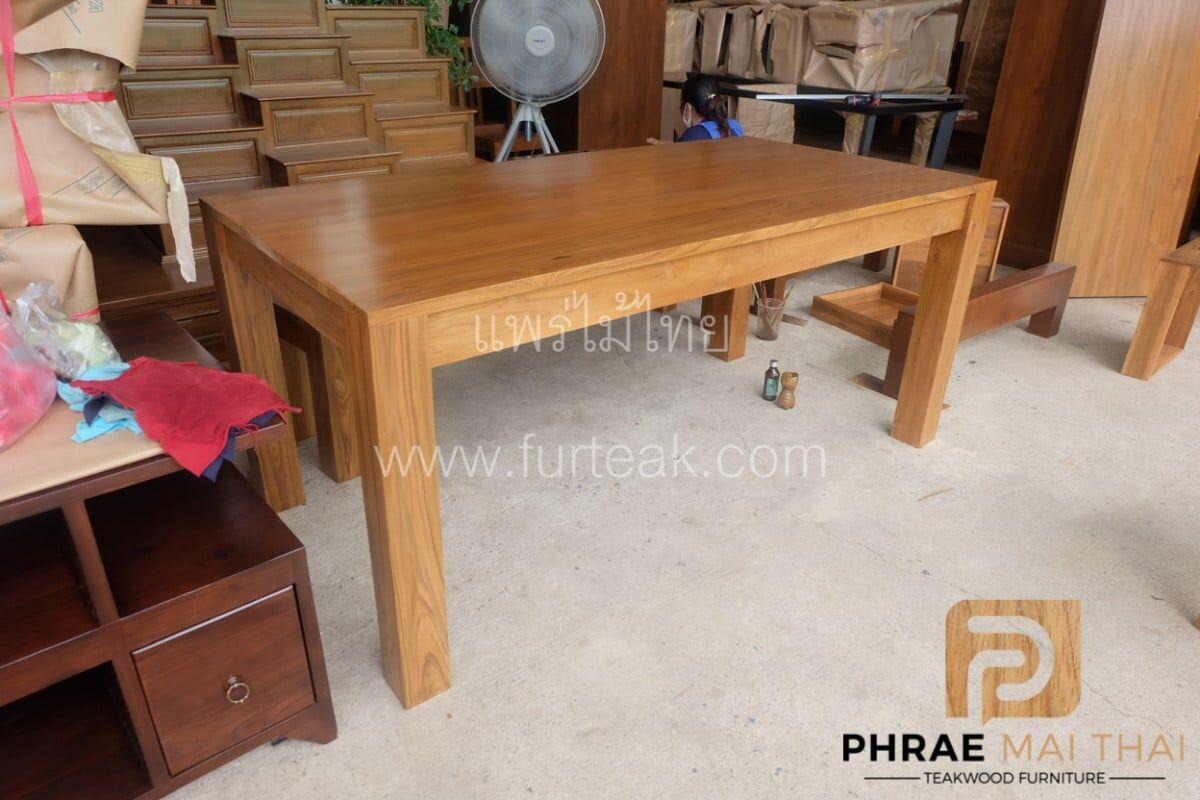 โต๊ะอาหารไม้สักโมเดิร์น ขาไม้ตัน ท่อนใหญ่  แข็งแรงและสวยงาม สีสักทอง
