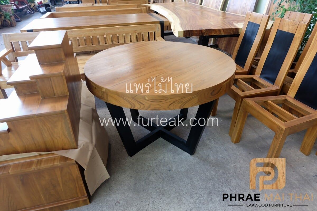 โต๊ะกลม ขาทรงคางหมู สไตล์โมเดิร์น ขนาด 120 ซม. สีสักทอง ขาสีดำ เป็นไม้สักทองอบแห้ง ซึ่งคุณสมบัติของไม้เป็นไม้สักเก่า เราเลือกใช้ไม้สักที่มีคุณภาพและใช้กระบวนการอบไม้ จึงทำให้ไม้มีการคงสภาพ ความชื้นน้อย โอกาสไม้หด หรือ แตกงอน้อยมาก