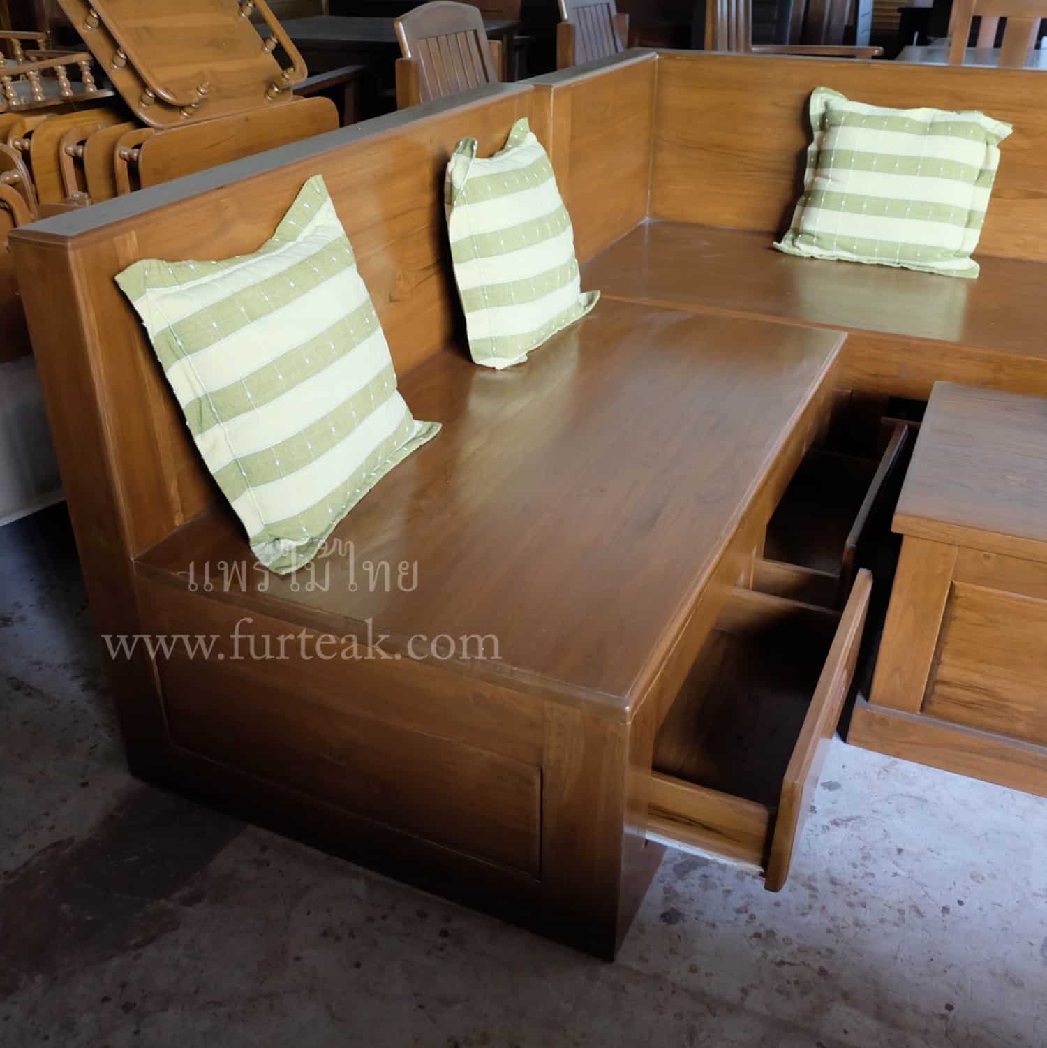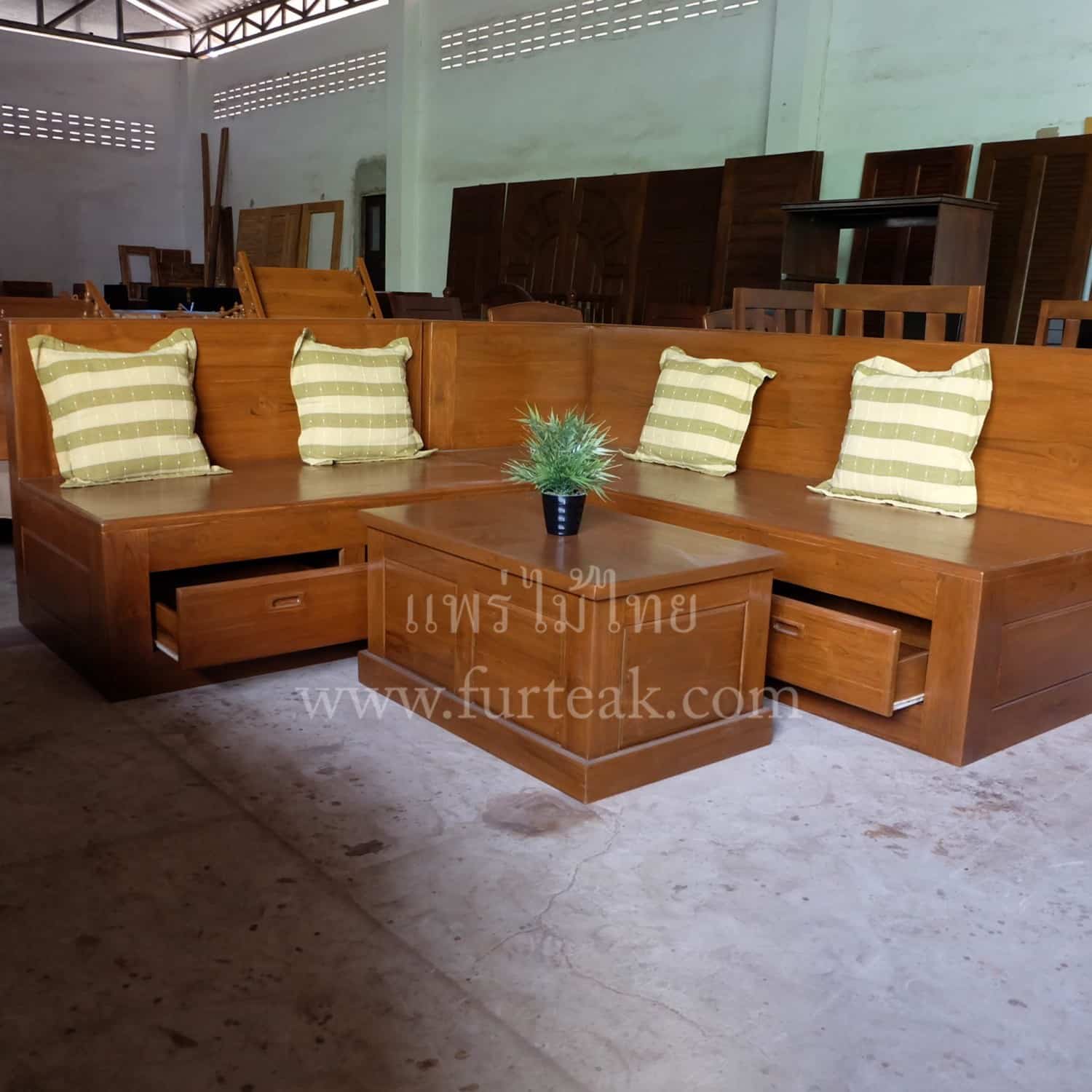 ชุดรับแขกโมเดิร์นกล่อง ตัว L ประกอบไปด้วยโซฟา 2 ตัว โต้ะกลาง 1 ตัว สีสักเข้มเป็นไม้สักทองอบแห้ง ซึ่งคุณสมบัติของไม้เป็นไม้เนื้อแข็งอายุตั้งแต่ 30 ปีขึ้นไป เราเลือกใช้ไม้สักที่มีคุณภาพและใช้กระบวนการอบไม้ จึงทำให้ไม้มีการคงสภาพ ความชื้นน้อย และโอกาสไม้หดตัวน้อยมาก