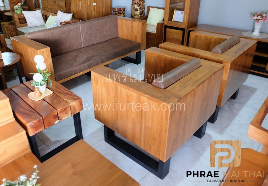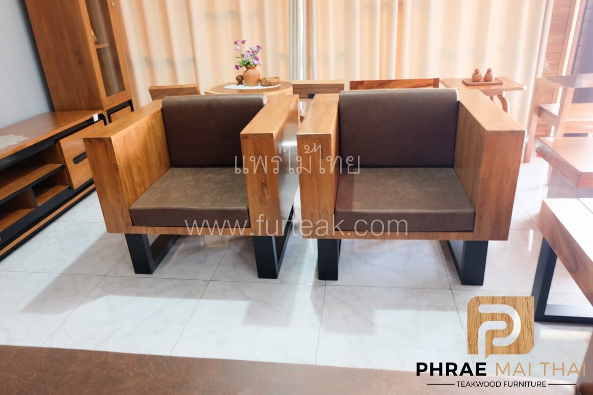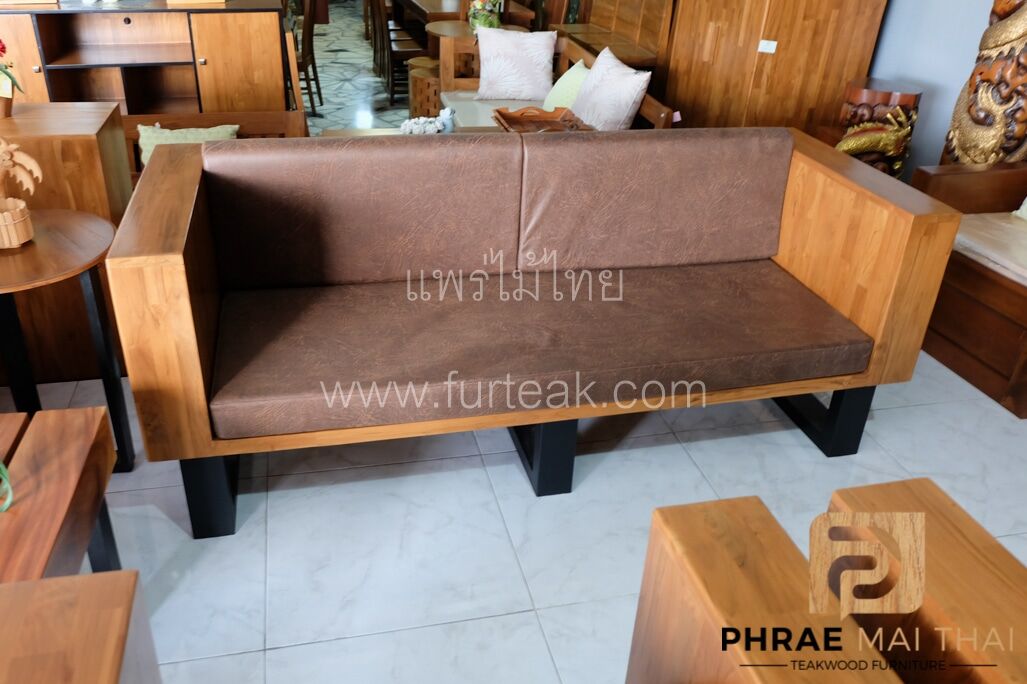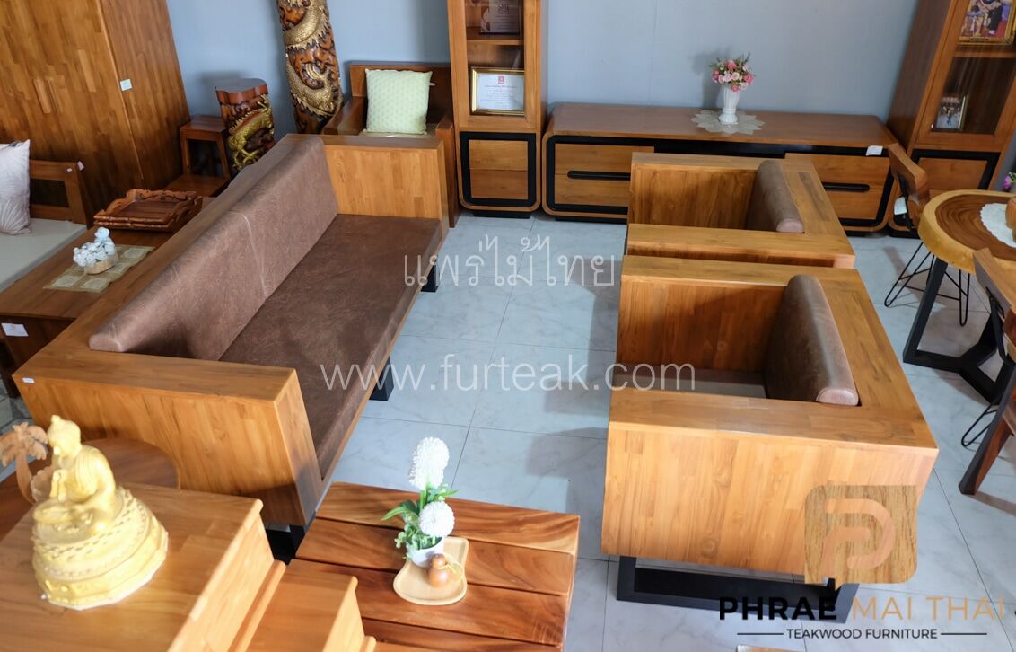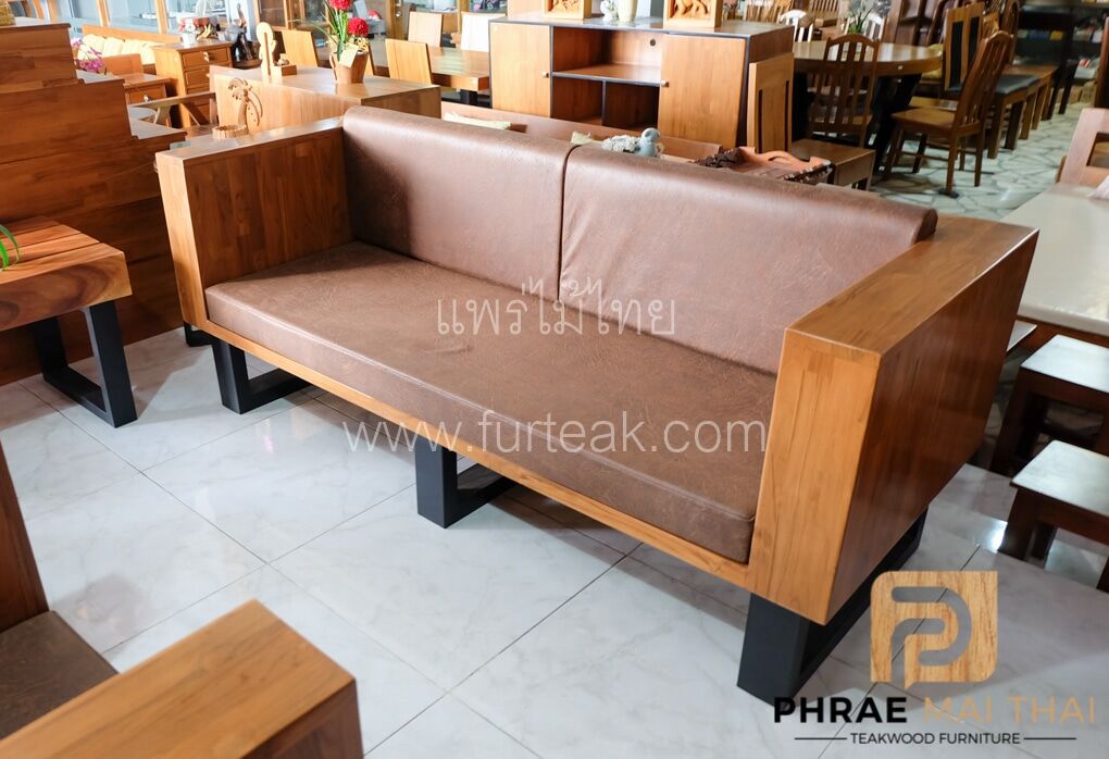 โซฟากล่องไม้สักประสานลายปาเก้ โมเดิร์น สีสักทอง ขาเหล็ก ทำสีพาวเดอร์โค้ท พร้อมเบาะนั่งและพนักพิง หนังกลับสีน้ำตาล หนา 4 นิ้ว ไม้สักผ่านกระบวนการอบแห้ง ซึ่งคุณสมบัติของไม้เป็นไม้เนื้อแข็งอายุตั้งแต่ 30 ปีขึ้นไป เราเลือกใช้ไม้สักที่มีคุณภาพและใช้กระบวนการอบไม้ จึงทำให้ไม้มีการคงสภาพ ความชื้นน้อย โอกาสไม้หดตัวน้อยมาก