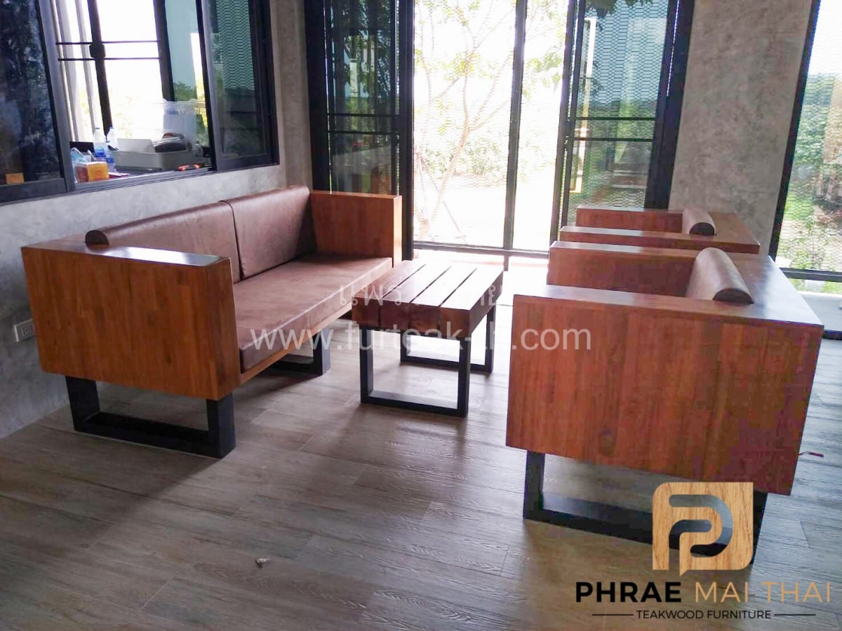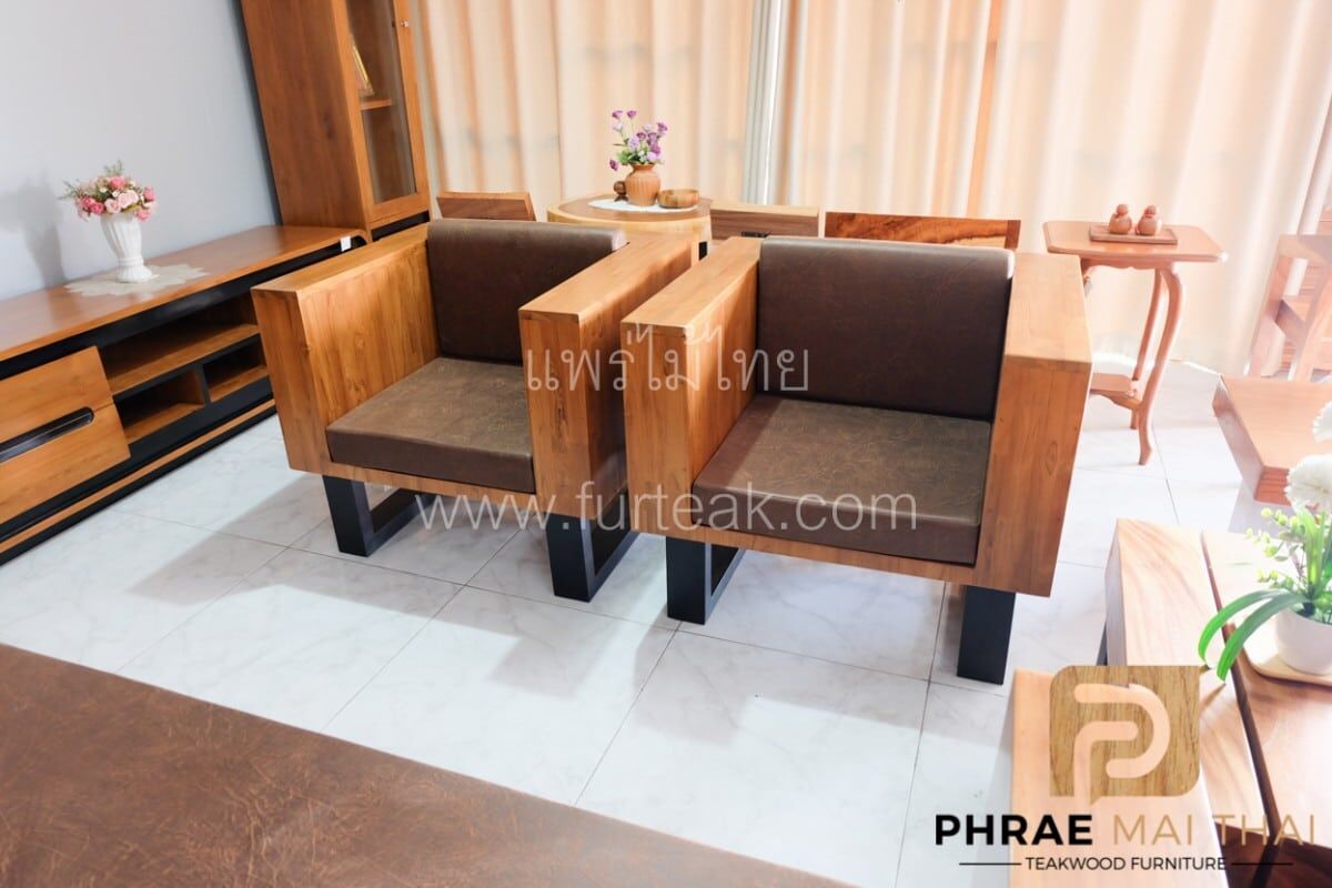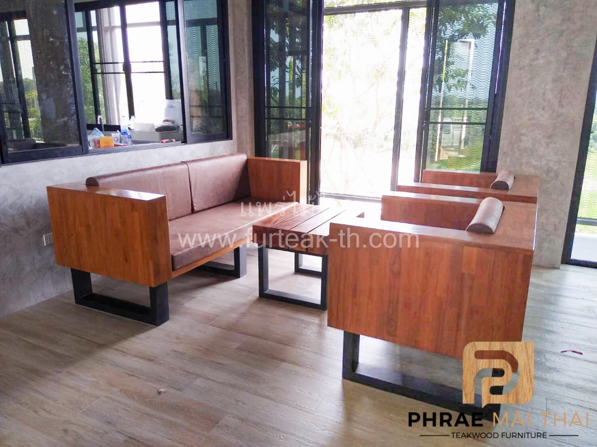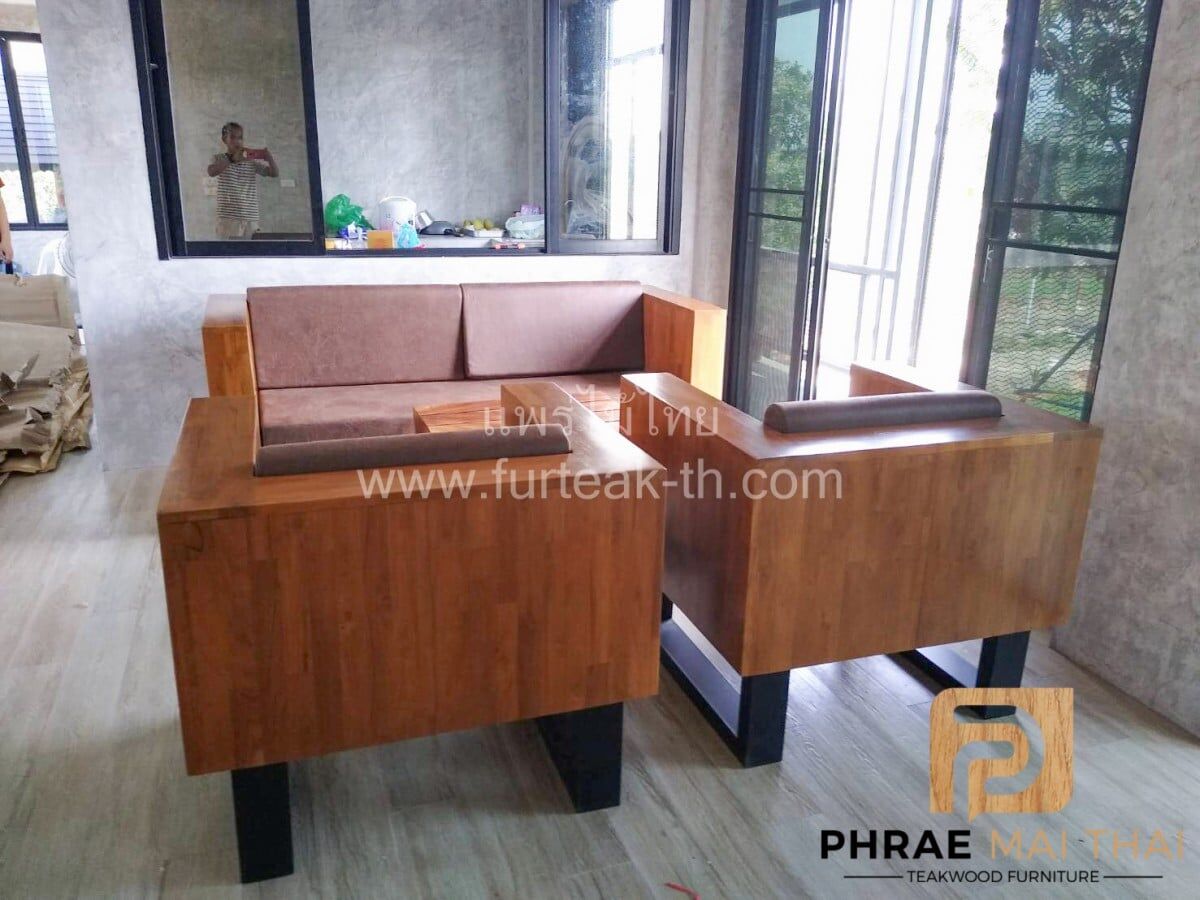 โซฟากล่องไม้สักประสานลายปาเก้ โมเดิร์น สีสักทอง ขาเหล็ก ทำสีพาวเดอร์โค้ท พร้อมเบาะนั่งและพนักพิง หนังกลับสีน้ำตาล หนา 4 นิ้ว ไม้สักผ่านกระบวนการอบแห้ง ซึ่งคุณสมบัติของไม้เป็นไม้เนื้อแข็งอายุตั้งแต่ 30 ปีขึ้นไป เราเลือกใช้ไม้สักที่มีคุณภาพและใช้กระบวนการอบไม้ จึงทำให้ไม้มีการคงสภาพ ความชื้นน้อย โอกาสไม้หดตัวน้อยมาก