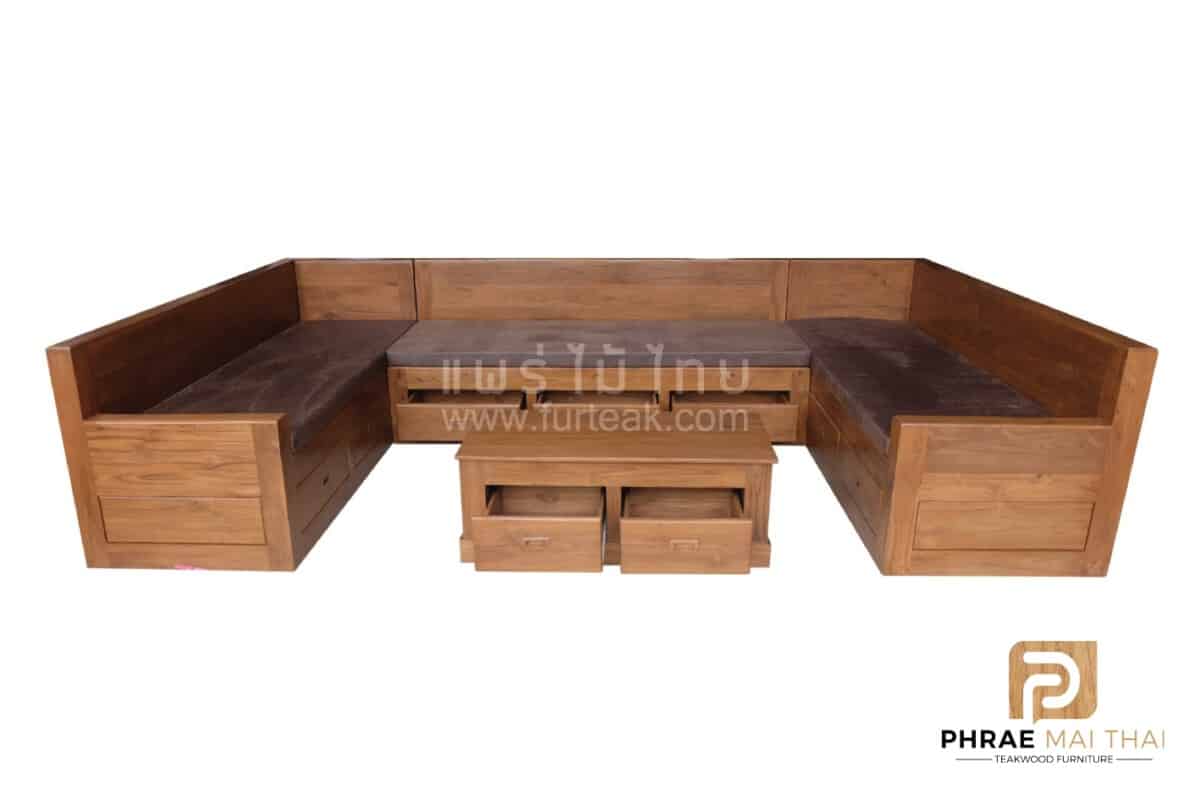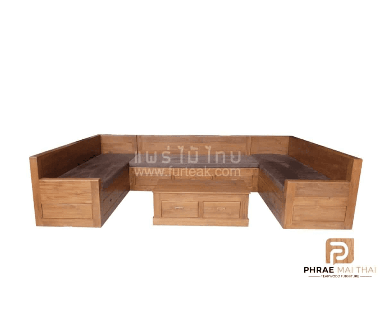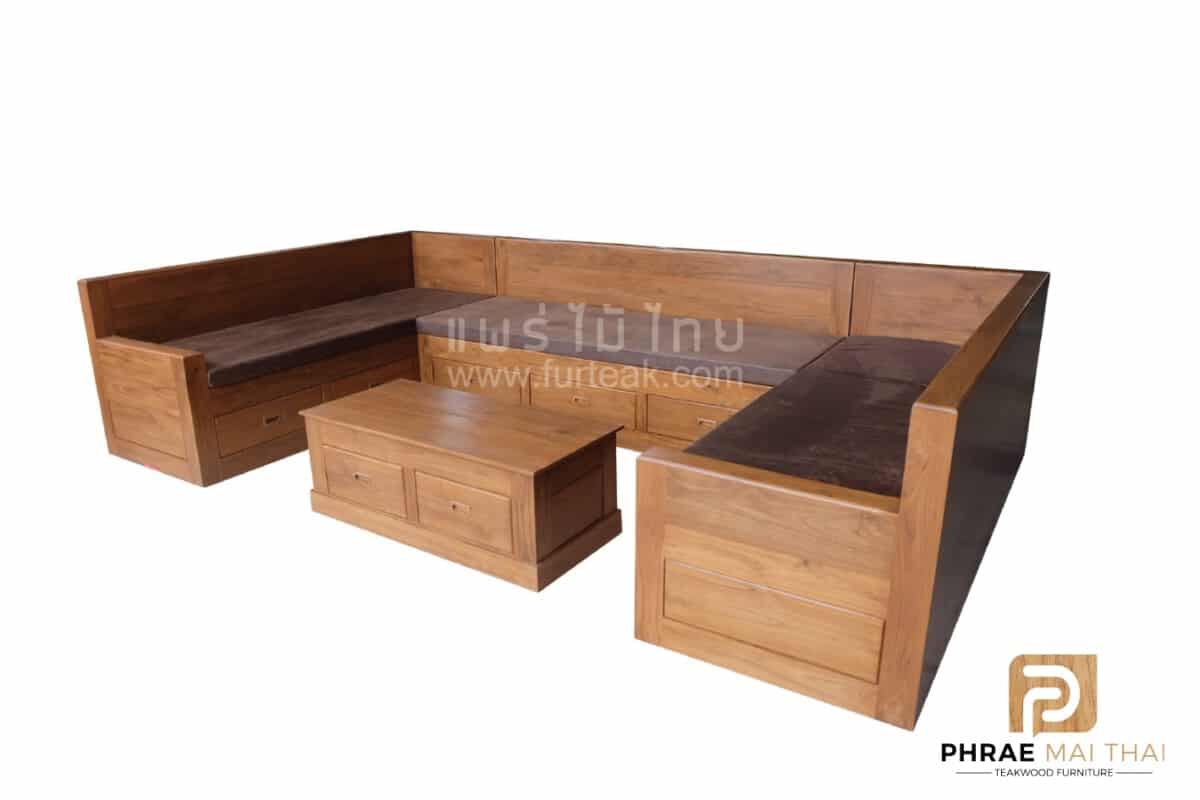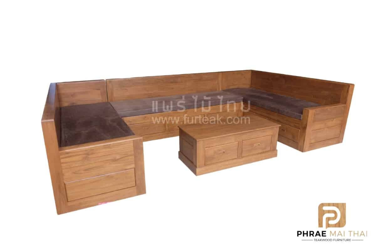 ชุดรับแขกโมเดิร์นกล่อง ตัว L ประกอบไปด้วยโซฟา 2 ตัว โต้ะกลาง 1 ตัว สีสักเข้มเป็นไม้สักทองอบแห้ง ซึ่งคุณสมบัติของไม้เป็นไม้เนื้อแข็งอายุตั้งแต่ 30 ปีขึ้นไป เราเลือกใช้ไม้สักที่มีคุณภาพและใช้กระบวนการอบไม้ จึงทำให้ไม้มีการคงสภาพ ความชื้นน้อย และโอกาสไม้หดตัวน้อยมาก