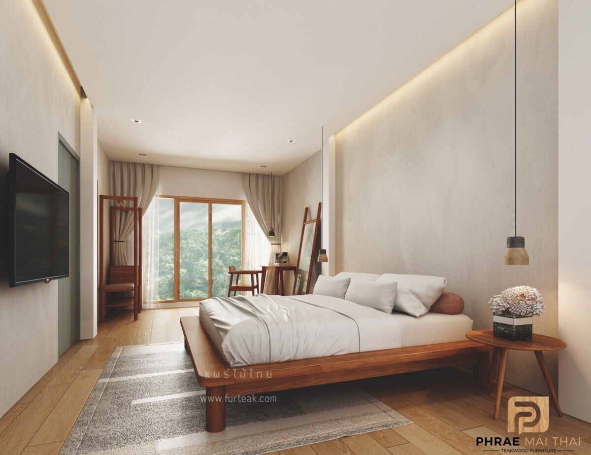 เฟอร์นิเจอร์ทุกชิ้น เป็นไม้สักทองอบแห้ง ซึ่งคุณสมบัติของไม้เป็นไม้เนื้อแข็งอายุตั้งแต่ 30 ปีขึ้นไป เราเลือกใช้ไม้สักที่มีคุณภาพและใช้กระบวนการอบไม้ จึงทำให้ไม้มีการคงสภาพ ความชื้นน้อย และโอกาสไม้หดตัวน้อยมาก