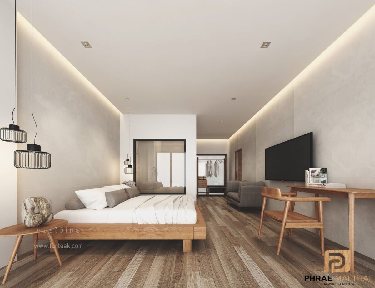 เฟอร์นิเจอร์ทุกชิ้น เป็นไม้สักทองอบแห้ง ซึ่งคุณสมบัติของไม้เป็นไม้เนื้อแข็งอายุตั้งแต่ 30 ปีขึ้นไป เราเลือกใช้ไม้สักที่มีคุณภาพและใช้กระบวนการอบไม้ จึงทำให้ไม้มีการคงสภาพ ความชื้นน้อย และโอกาสไม้หดตัวน้อยมาก