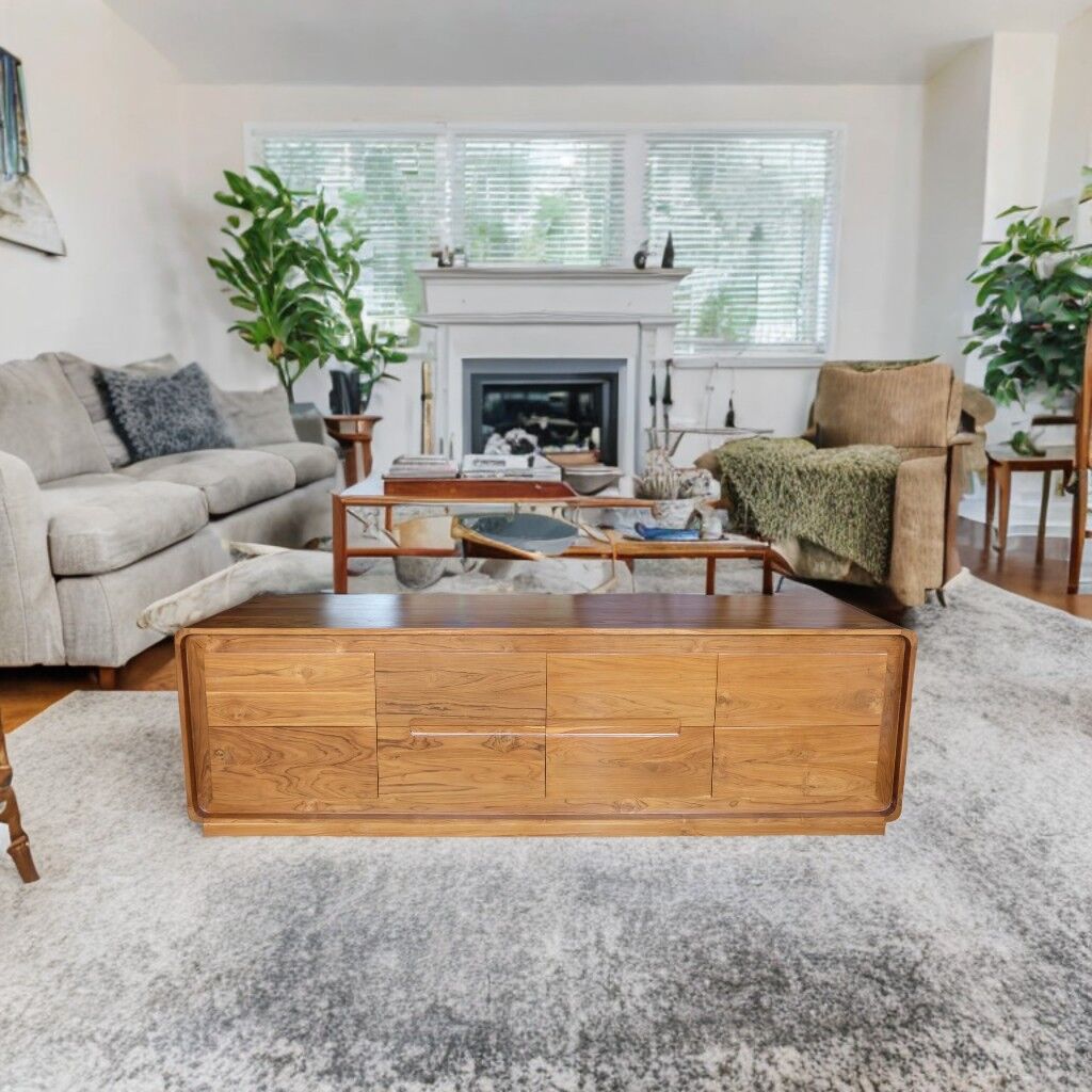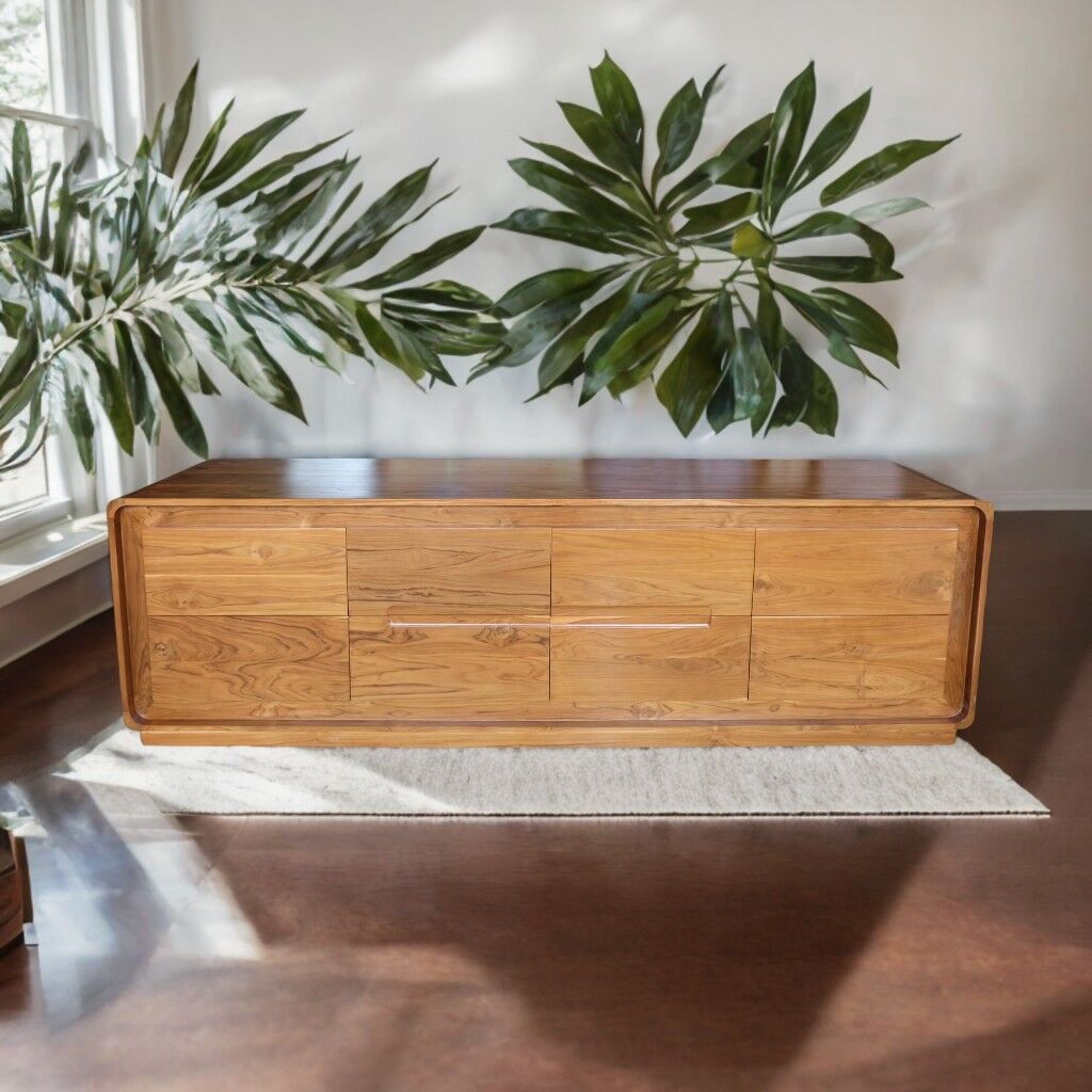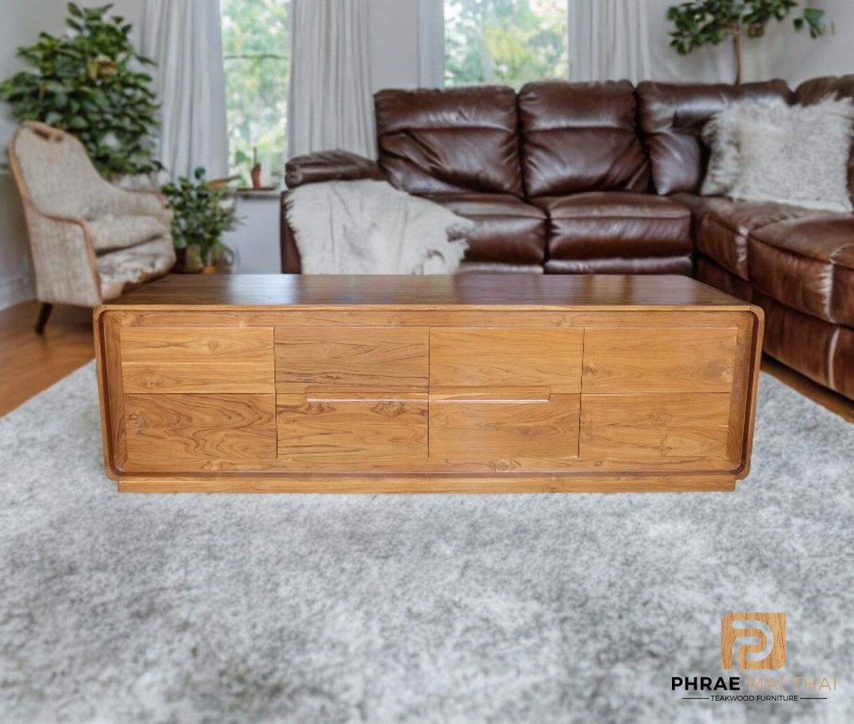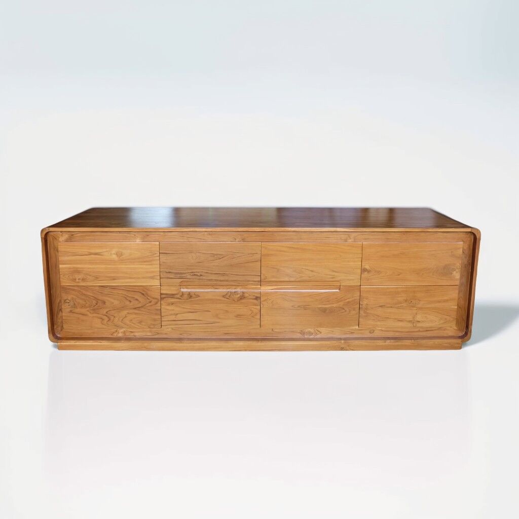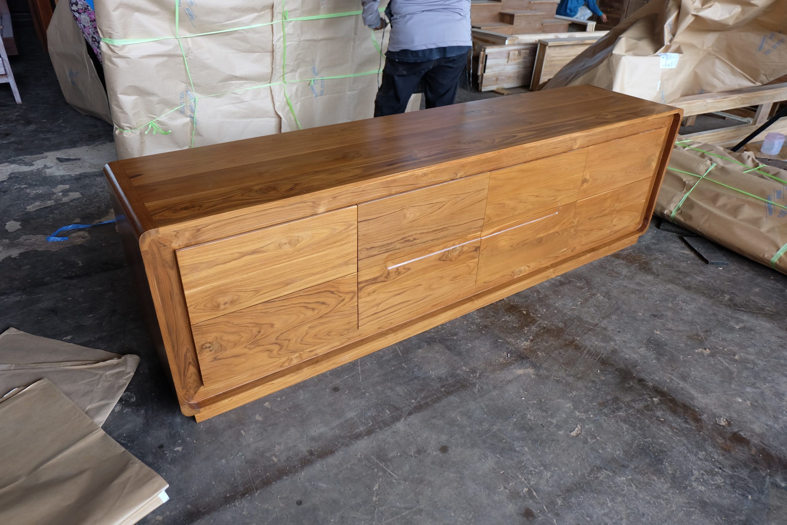 Sideboard 8 ลิ้นชัก modern art สีสักทองเป็นไม้สักทองอบแห้ง ซึ่งคุณสมบัติของไม้เป็นไม้เนื้อแข็งอายุตั้งแต่ 30 ปีขึ้นไป เราเลือกใช้ไม้สักที่มีคุณภาพและใช้กระบวนการอบไม้ จึงทำให้ไม้มีการคงสภาพ ความชื้นน้อย และโอกาสไม้หดตัวน้อยมาก