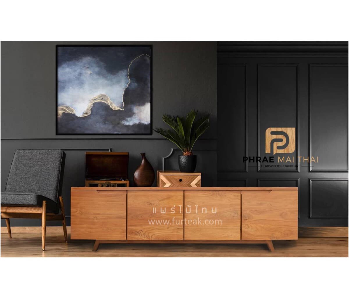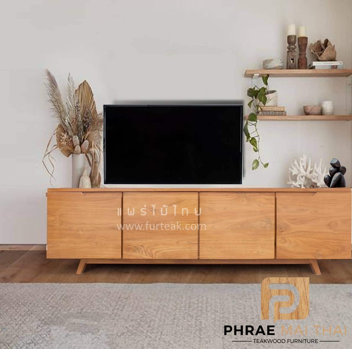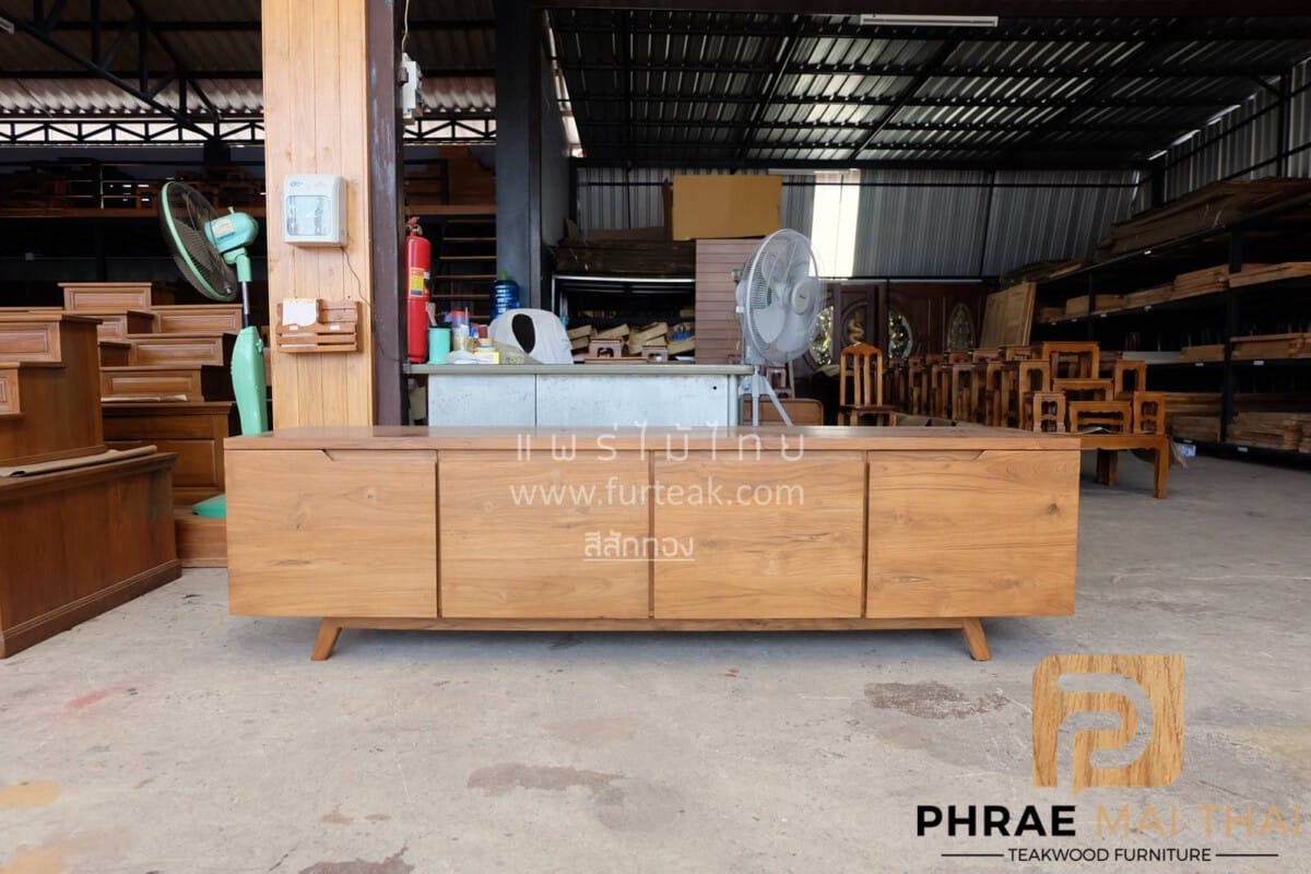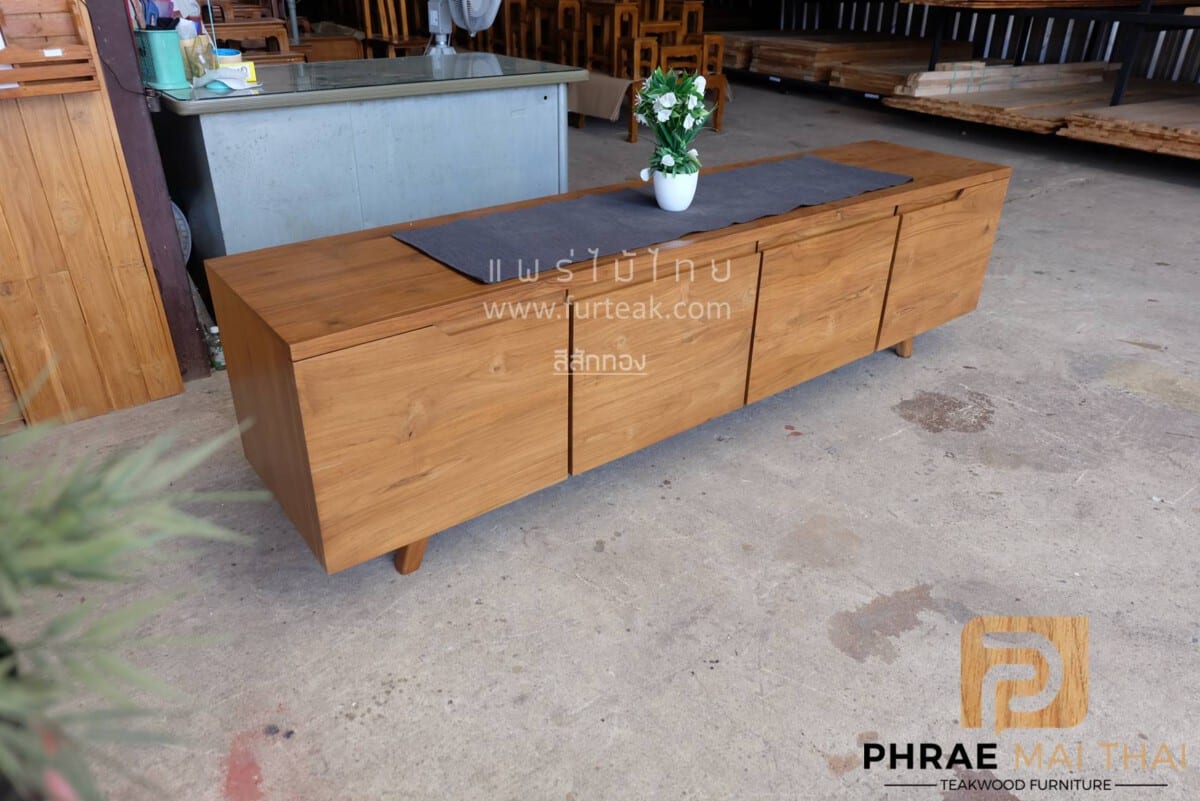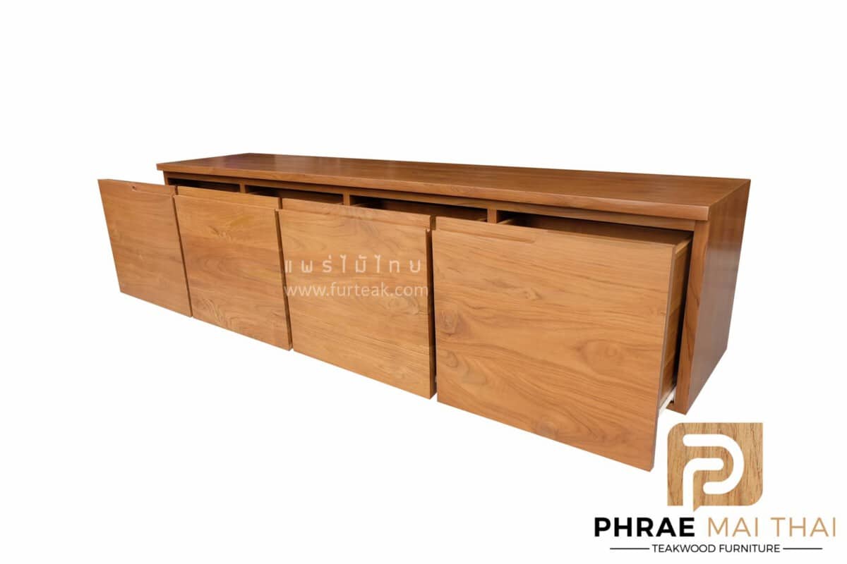 ชั้นวางทีวีโมเดิร์นไม้สัก ประกอบไปด้วย 4 ลิ้นชักแบบดึงในตัว สีสักทอง เป็นไม้สักทองอบแห้ง ซึ่งคุณสมบัติของไม้เป็นไม้เนื้อแข็งอายุตั้งแต่ 30 ปีขึ้นไป เราเลือกใช้ไม้สักที่มีคุณภาพและใช้กระบวนการอบไม้ จึงทำให้ไม้มีการคงสภาพ ความชื้นน้อย และโอกาสไม้หดตัวน้อยมาก
