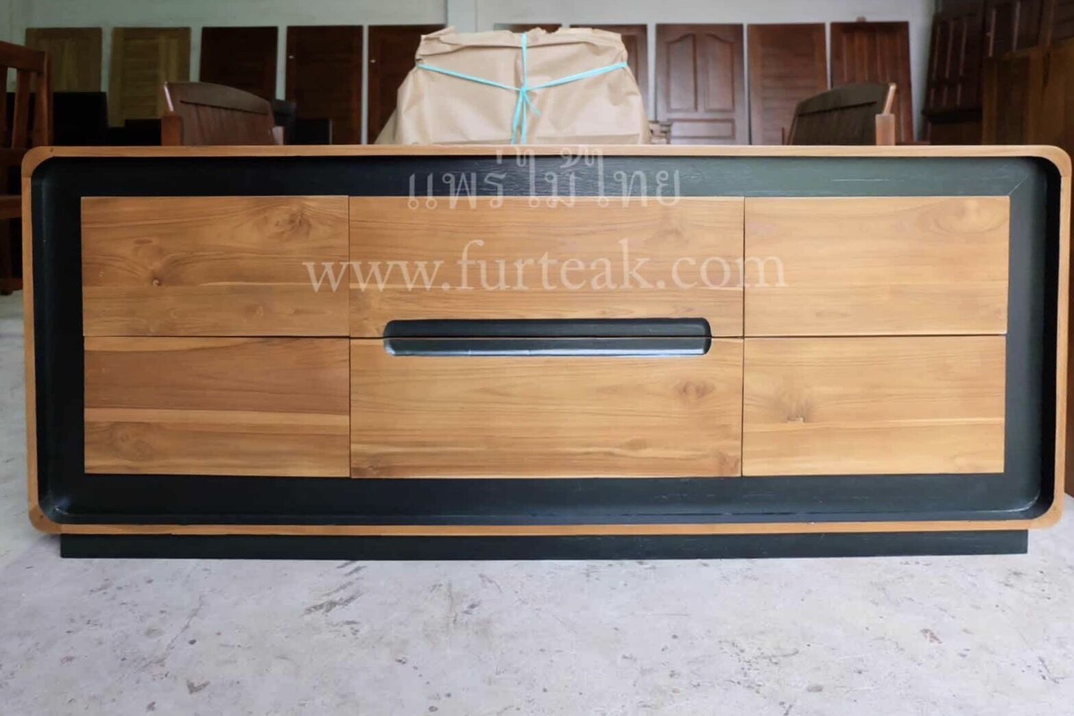 Sideboard 6 ลิ้นชัก modern art สีสักทอง เป็นไม้สักทองอบแห้ง ซึ่งคุณสมบัติของไม้เป็นไม้เนื้อแข็งอายุตั้งแต่ 30 ปีขึ้นไป เราเลือกใช้ไม้สักที่มีคุณภาพและใช้กระบวนการอบไม้ จึงทำให้ไม้มีการคงสภาพ ความชื้นน้อย และโอกาสไม้หดตัวน้อยมาก