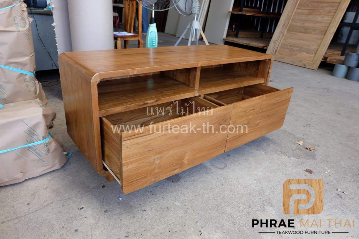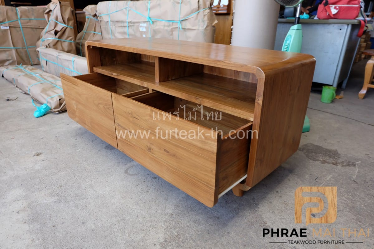 ชั้นวางทีวีโมเดิร์น ขาลอย 2 ลิ้นชัก สีสักทองเป็นไม้สักอบแห้ง ซึ่งคุณสมบัติของไม้เป็นไม้เนื้อแข็งอายุตั้งแต่ 30 ปีขึ้นไป เราเลือกใช้ไม้สักที่มีคุณภาพและใช้กระบวนการอบไม้ จึงทำให้ไม้มีการคงสภาพ ความชื้นน้อย และโอกาสไม้หดตัวน้อยมาก
