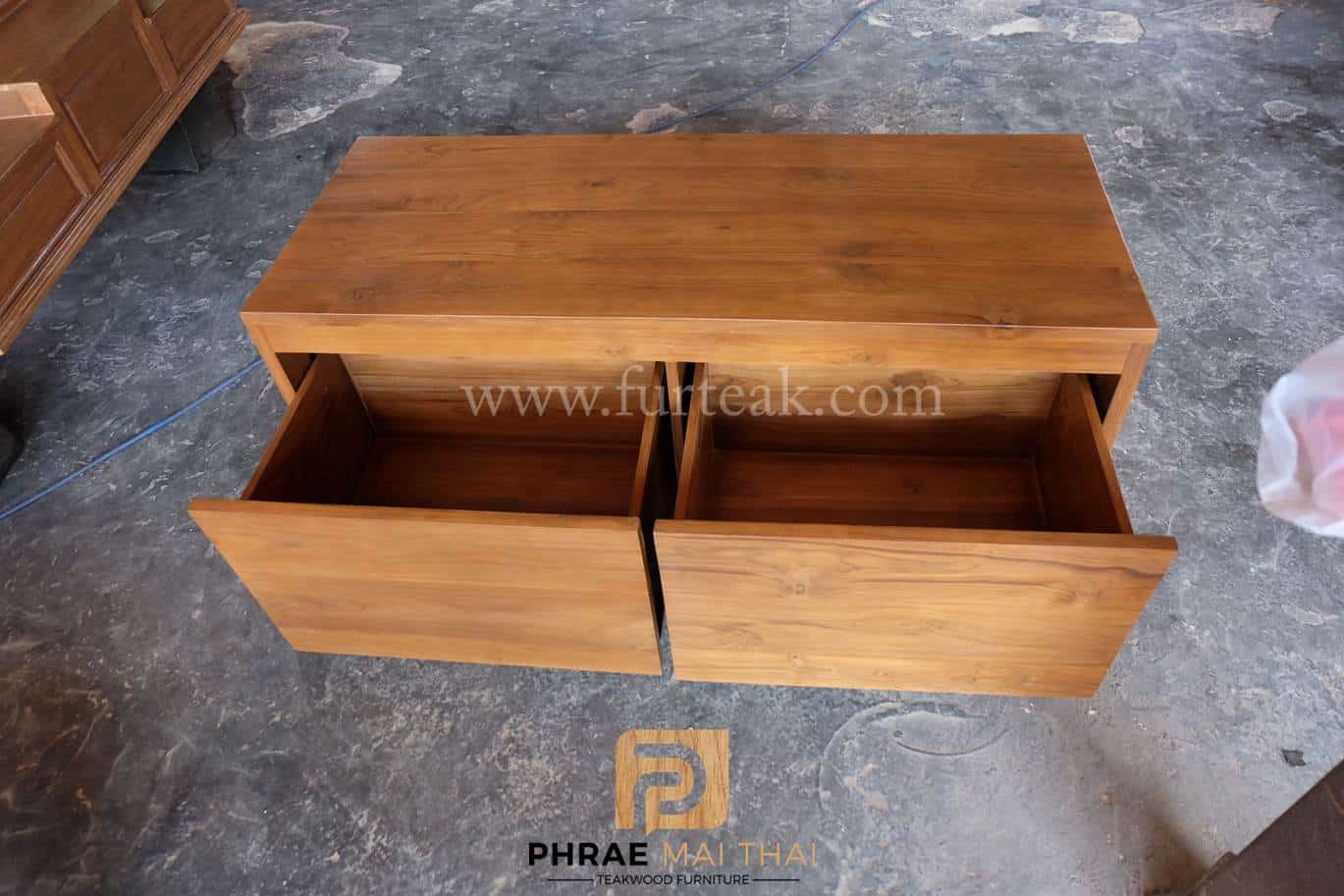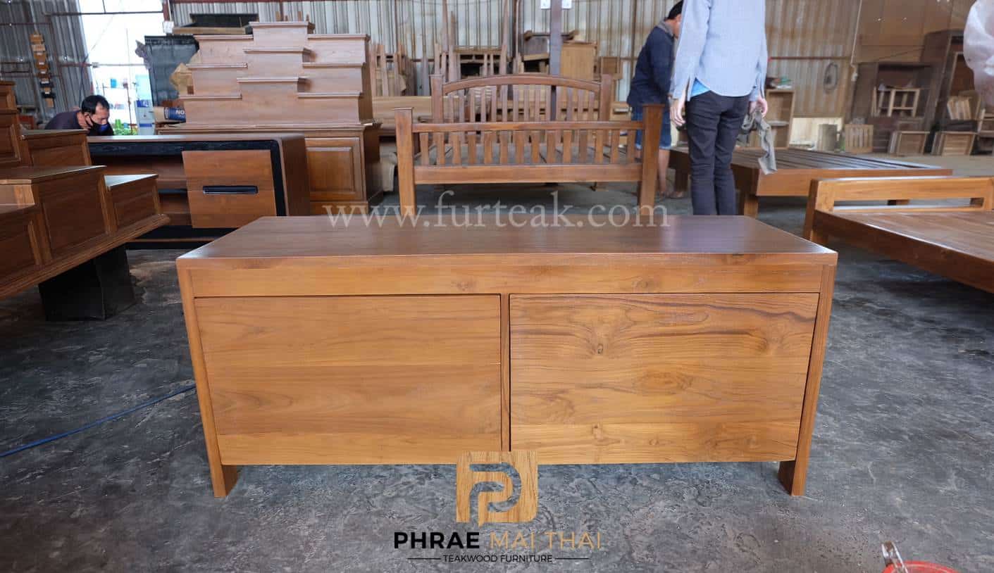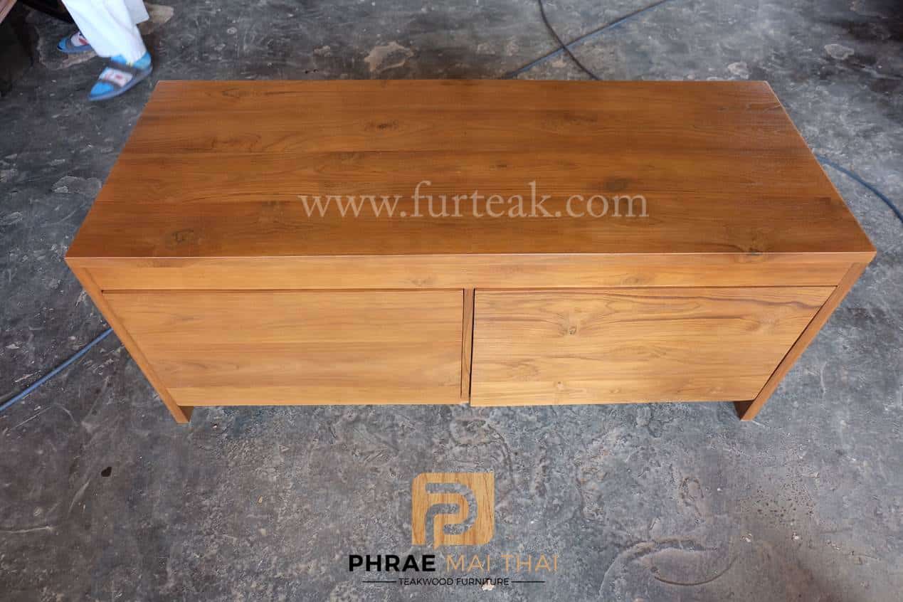 ชั้นวางทีวีโมเดิร์น ประกอบไปด้วย 2 ลิ้นชัก สีสักทองเป็นไม้สักทองอบแห้ง ซึ่งคุณสมบัติของไม้เป็นไม้เนื้อแข็งอายุตั้งแต่ 30 ปีขึ้นไป เราเลือกใช้ไม้สักที่มีคุณภาพและใช้กระบวนการอบไม้ จึงทำให้ไม้มีการคงสภาพ ความชื้นน้อย และโอกาสไม้หดตัวน้อยมาก