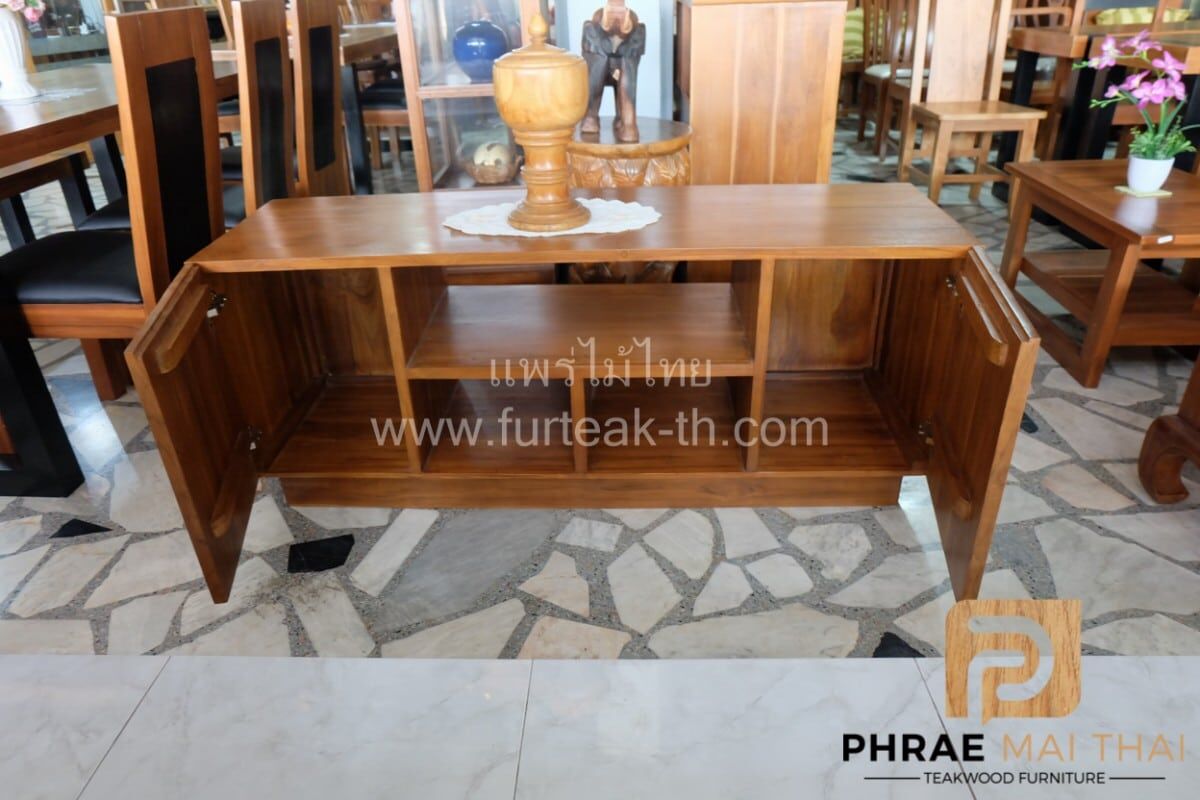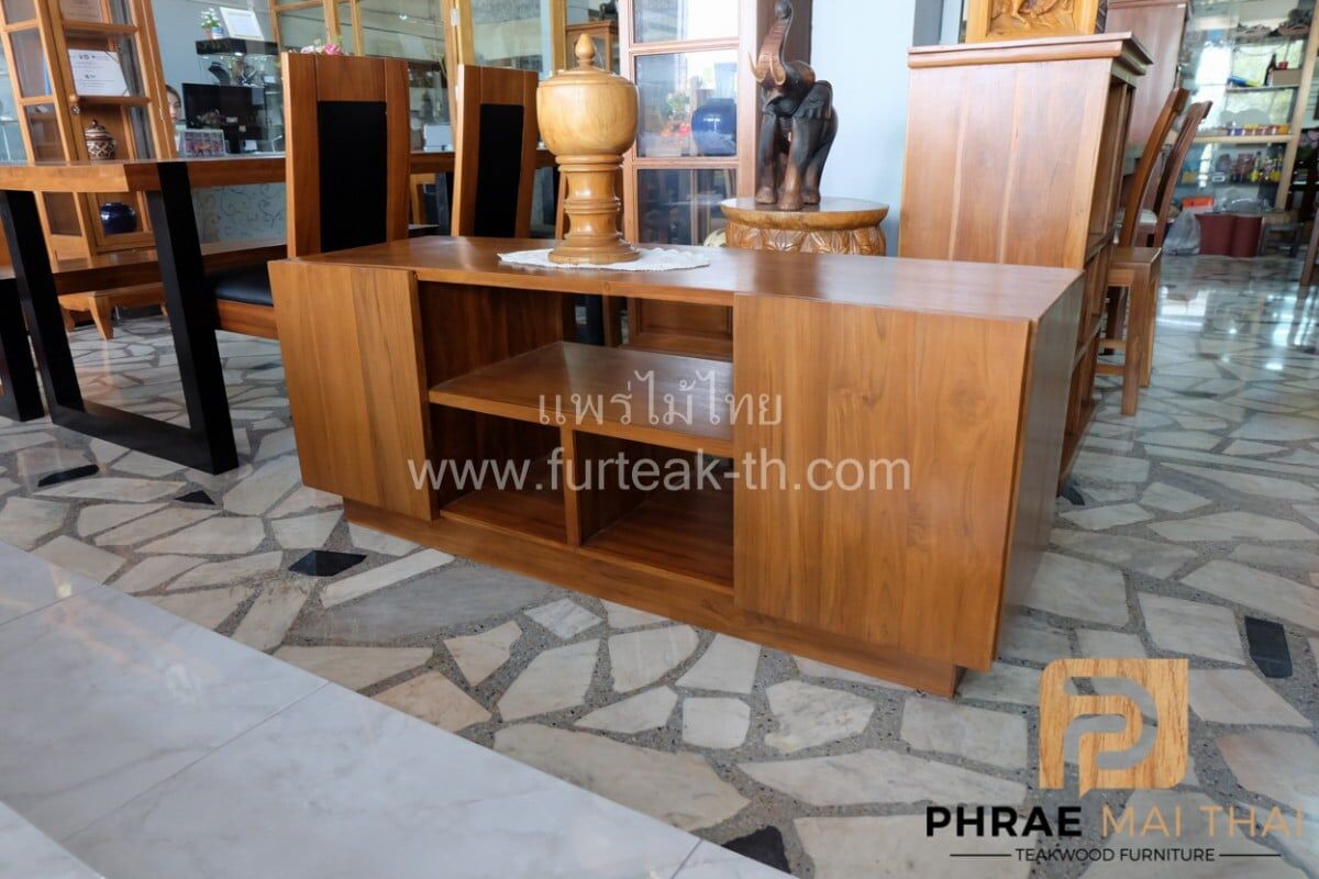 ชั้นวางทีวี สไตล์ โมเดิร์น modern loft สีสักทอง บานเปิด-ปิด เก็บของ 2 ช่อง และ ชั้นวางอเนกประสงค์ เป็นไม้สักทองอบแห้ง ซึ่งคุณสมบัติของไม้เป็นไม้เนื้อแข็งอายุตั้งแต่ 30 ปีขึ้นไป เราเลือกใช้ไม้สักที่มีคุณภาพและใช้กระบวนการอบไม้ จึงทำให้ไม้มีการคงสภาพ ความชื้นน้อย และโอกาสไม้หดตัวน้อยมาก