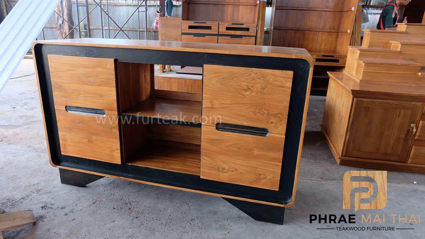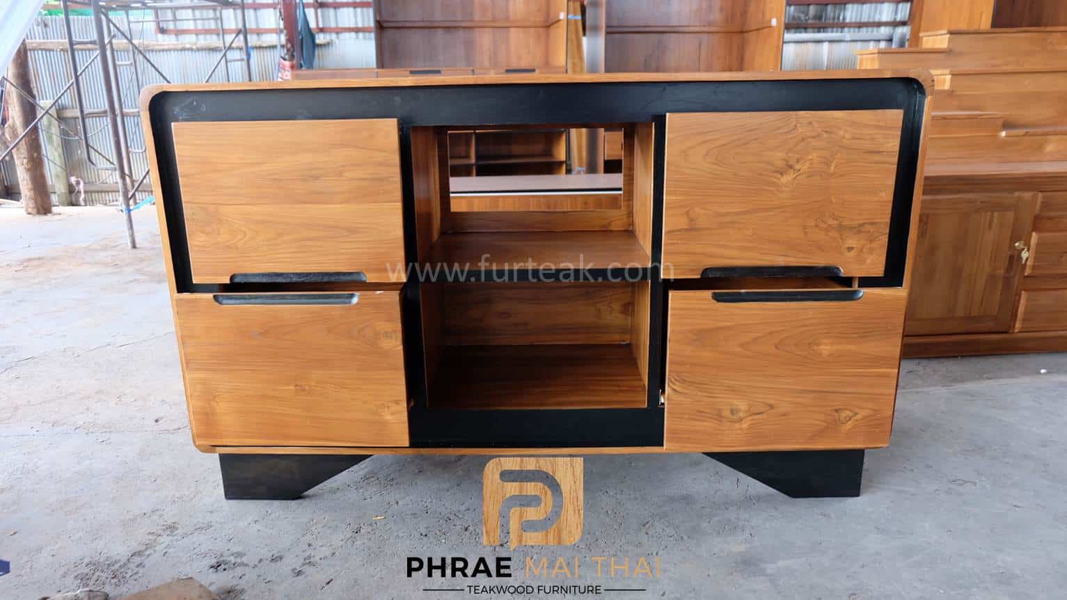 ชั้นวางทีวีโมเดิร์น แบบขาลอย 2 ลิ้นชัก สีสักทองเป็นไม้สักทองอบแห้ง ซึ่งคุณสมบัติของไม้เป็นไม้สักที่มีอายุตั้งแต่ 30 ปีขึ้นไป เราเลือกใช้ไม้สักที่มีคุณภาพและใช้กระบวนการอบไม้ จึงทำให้ไม้มีการคงสภาพ ความชื้นน้อย และโอกาสไม้หดตัวน้อยมาก