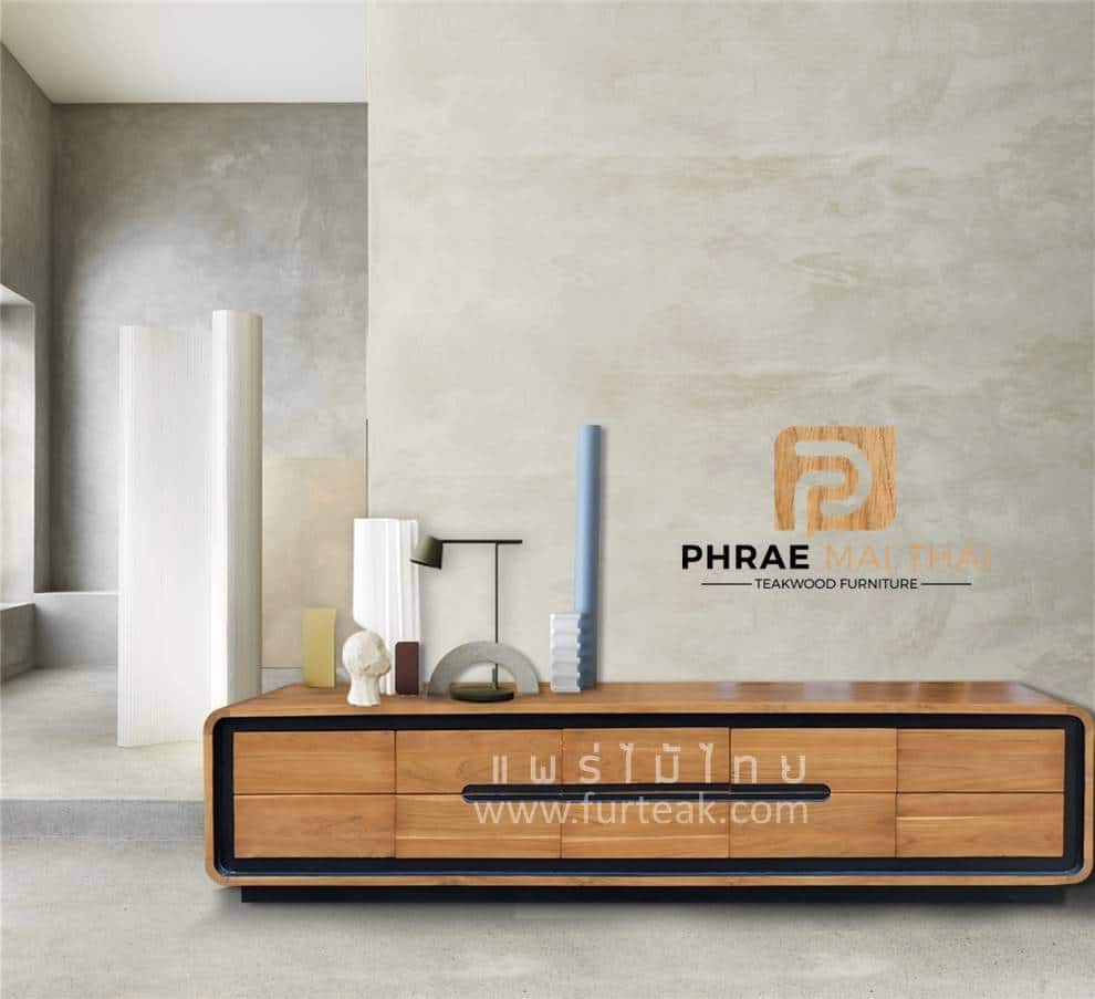 Sideboard 10 ลิ้นชัก modern loft สีสักทองคาดดำ เป็นไม้สักทองอบแห้ง ซึ่งคุณสมบัติของไม้เป็นไม้เนื้อแข็งอายุตั้งแต่ 30 ปีขึ้นไป เราเลือกใช้ไม้สักที่มีคุณภาพและใช้กระบวนการอบไม้ จึงทำให้ไม้มีการคงสภาพ ความชื้นน้อย และโอกาสไม้หดตัวน้อยมาก