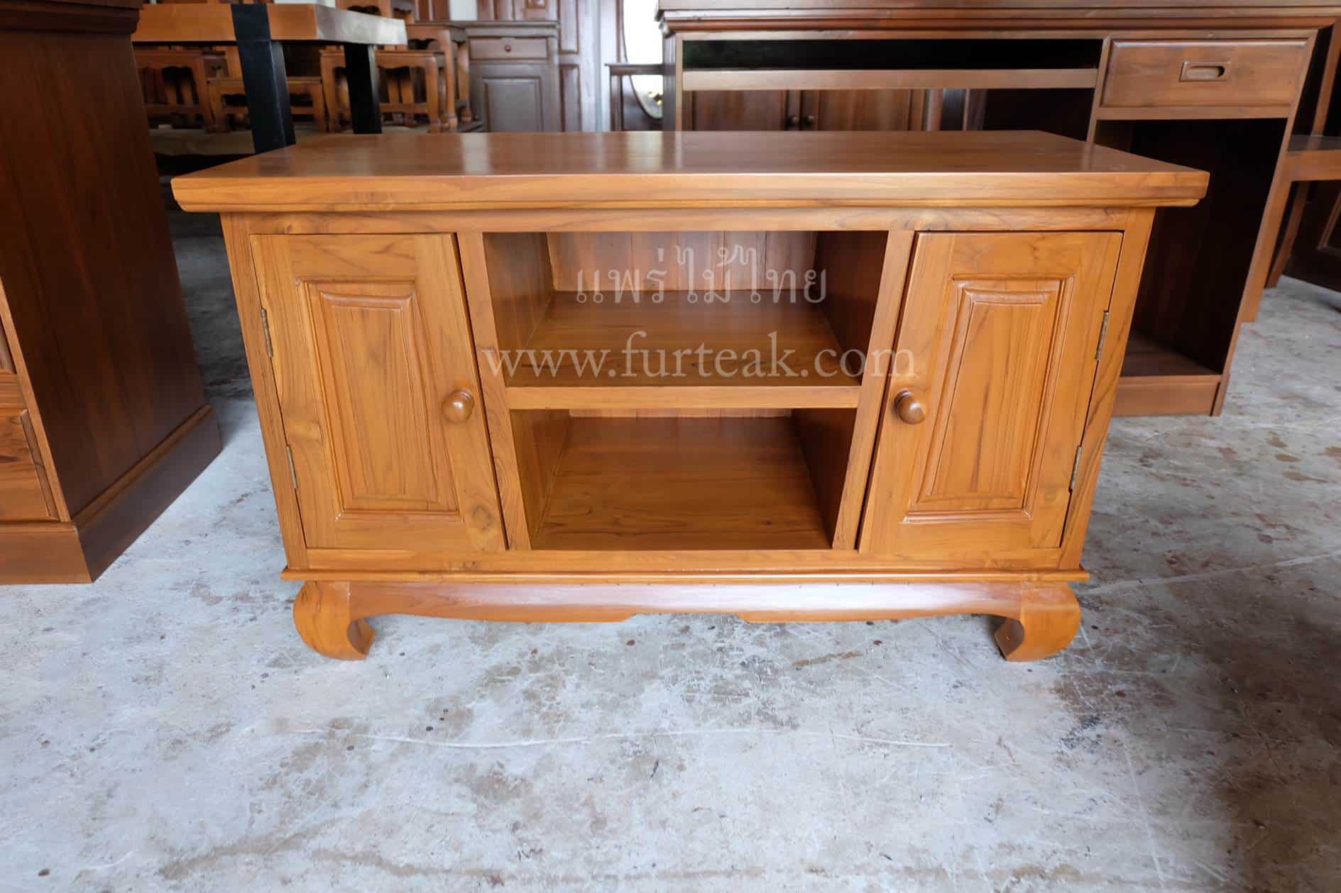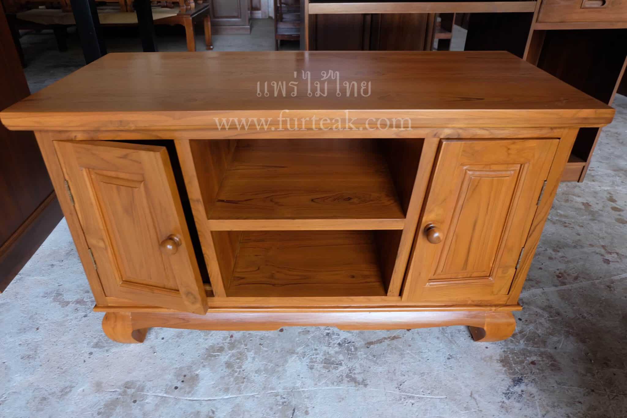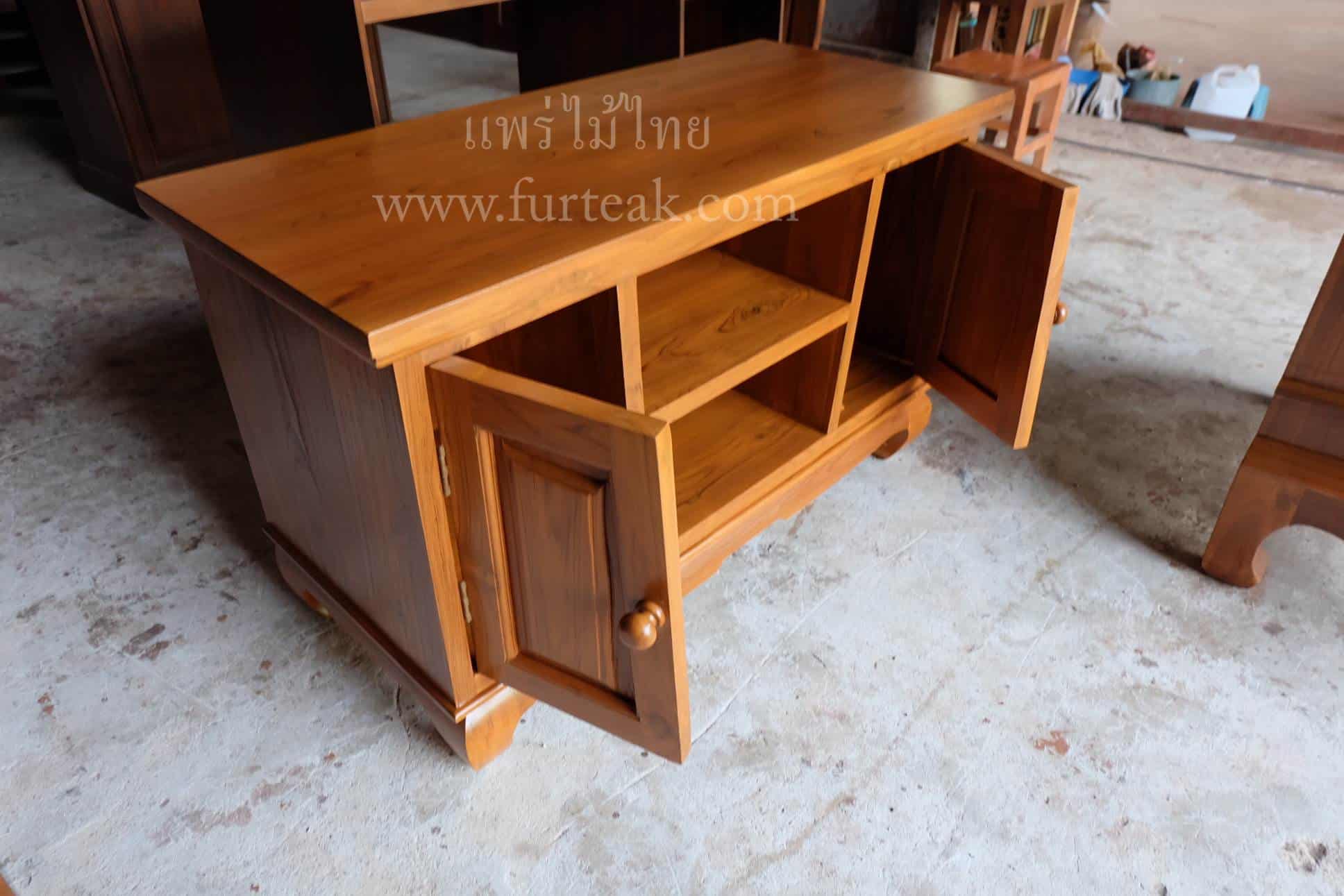 Sideboard 3 ลิ้นชัก ทรงไทย สีสักทองเป็นไม้สักทองอบแห้ง ซึ่งคุณสมบัติของไม้เป็นไม้เนื้อแข็งอายุตั้งแต่ 30 ปีขึ้นไป เราเลือกใช้ไม้สักที่มีคุณภาพและใช้กระบวนการอบไม้ จึงทำให้ไม้มีการคงสภาพ ความชื้นน้อย และโอกาสไม้หดตัวน้อยมาก