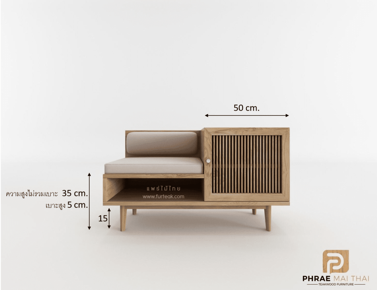 ตู้นั่งใส่รองเท้า พร้อมเบาะ 2 นิ้ว ซึ่งคุณสมบัติของไม้เป็นไม้เนื้อแข็งอายุตั้งแต่ 30-50 ปีขึ้นไป เราเลือกใช้ไม้สักที่มีคุณภาพและใช้กระบวนการอบไม้ จึงทำให้ไม้มีการคงสภาพ ความชื้นน้อย และโอกาสไม้หดตัวน้อยมาก