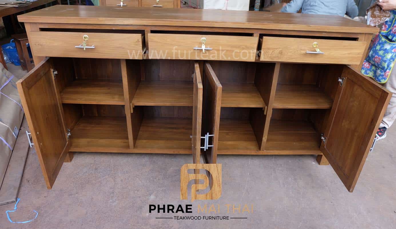 ตู้อเนกประสงค์ไม้สัก / เคาน์เตอร์ ยาว 2 ม. สีสักทอง ซึ่งคุณสมบัติของไม้เป็นไม้เนื้อแข็งอายุตั้งแต่ 30-50 ปีขึ้นไป เราเลือกใช้ไม้สักที่มีคุณภาพและใช้กระบวนการอบไม้ จึงทำให้ไม้มีการคงสภาพ ความชื้นน้อย และโอกาสไม้หดตัวน้อยมาก