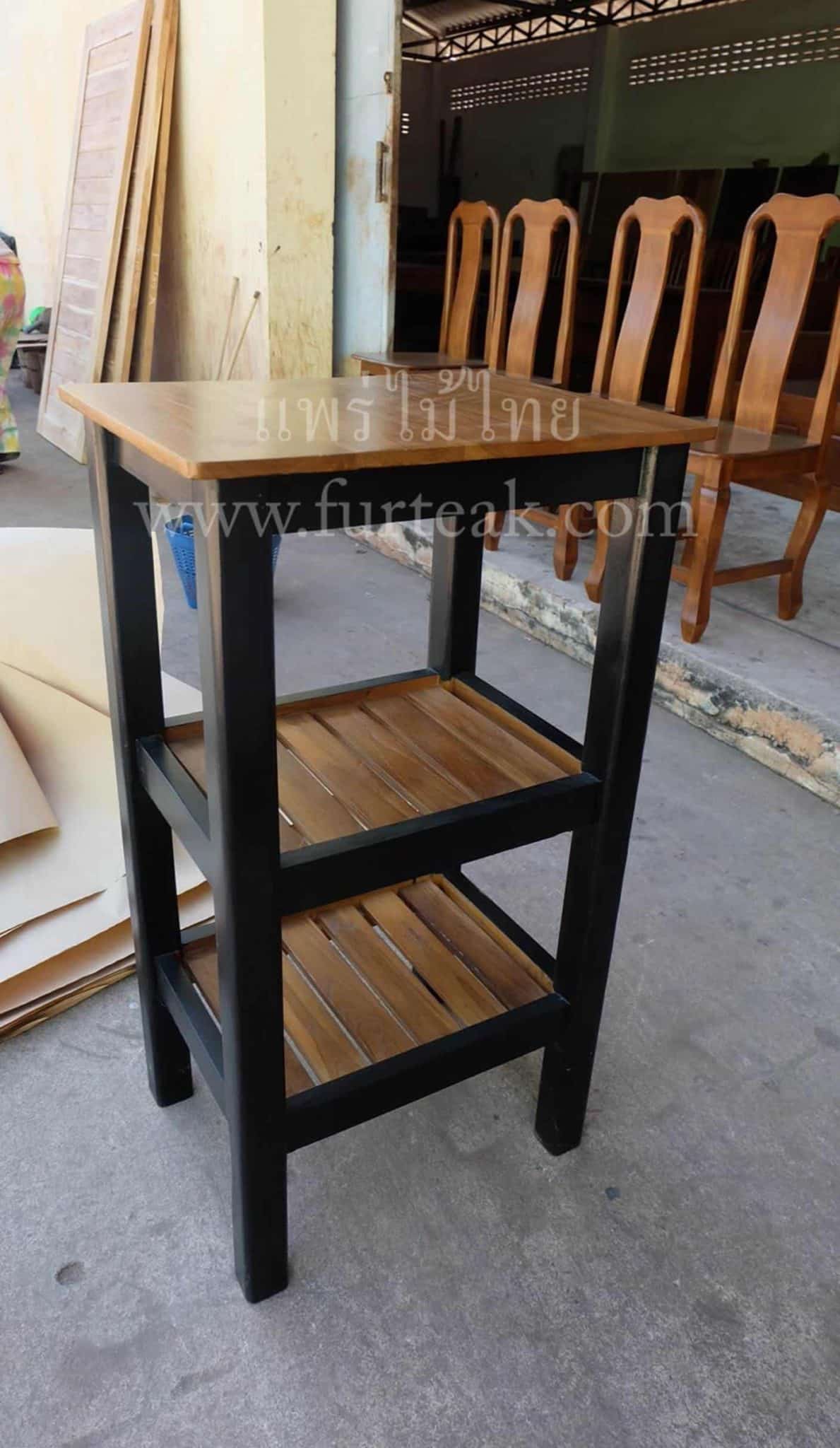 โต๊ะวางของ/ ชั้นอเนกประสงค์ สีธรรมชาติขาทาสีดำเป็นไม้สักทองอบแห้ง ซึ่งคุณสมบัติของไม้เป็นไม้เนื้อแข็งอายุตั้งแต่ 30 ปีขึ้นไป เราเลือกใช้ไม้สักที่มีคุณภาพและใช้กระบวนการอบไม้ จึงทำให้ไม้มีการคงสภาพ ความชื้นน้อย และโอกาสไม้หดตัวน้อยมาก