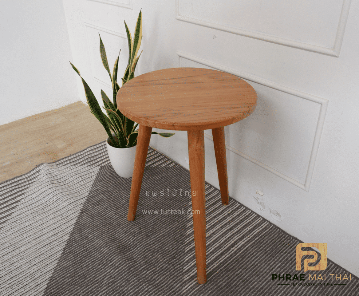 โต๊ะวางของ ทรงกลม เป็นไม้สักทองอบแห้งซึ่งคุณสมบัติของไม้เป็นไม้เนื้อแข็งอายุตั้งแต่ 30 ปีขึ้นไป เราเลือกใช้ไม้สักที่มีคุณภาพและใช้กระบวนการอบไม้ จึงทำให้ไม้มีการคงสภาพ ความชื้นน้อย โอกาสไม้หด หรือ แตกงอน้อยมาก