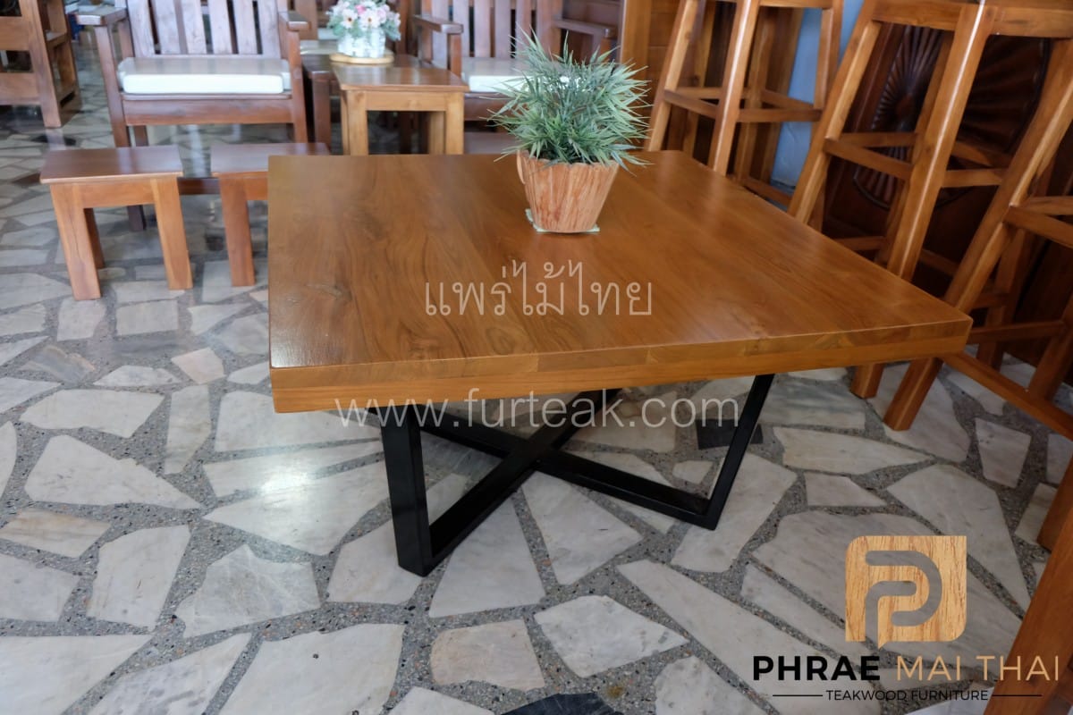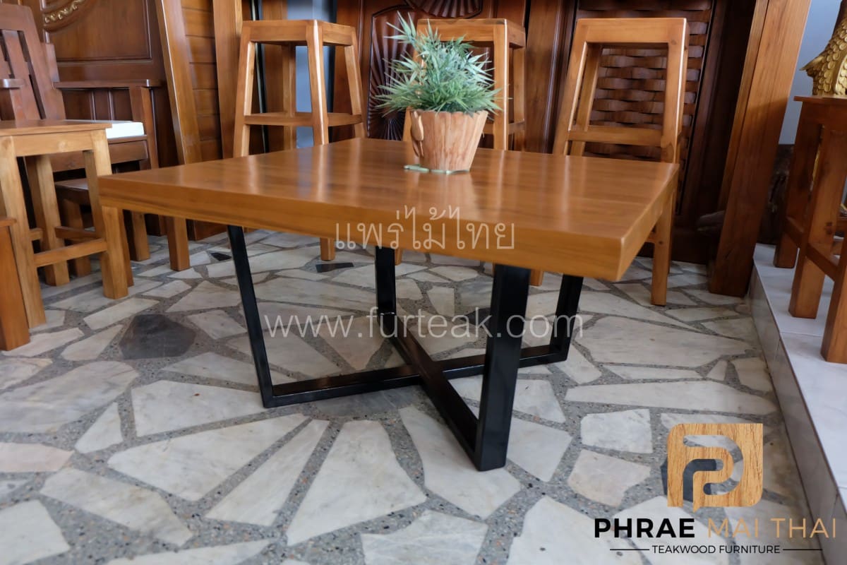 โต๊ะกลางโซฟาทรงสี่เหลี่ยม/โต๊ะอเนกประสงค์ สีธรรมชาติเป็นไม้สัก ขาเหล็ก เราเลือกใช้ไม้สักที่มีคุณภาพและใช้กระบวนการอบไม้ จึงทำให้ไม้มีการคงสภาพ ความชื้นน้อย โอกาสไม้หดตัวจึงน้อยมาก